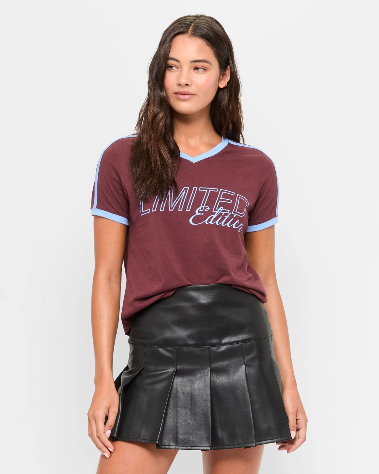 Refresh your casual wardrobe with the Australian Cotton Graphic Athleisure T-Shirt by Lily Loves. Made from high-quality Australian cotton, this tee is designed to keep you comfortable while looking stylish. The deep chocolate brown fabric features contrasting blue details, including a ribbed V-neckline and shoulder stripes, adding a distinct touch. With its regular fit and breathable material, this top is ideal for everyday wear. Make a statement with the bold graphic print on the chest and enjoy how this limited edition tee complements any outfit. Ensure you grab this must-have piece for your collection.