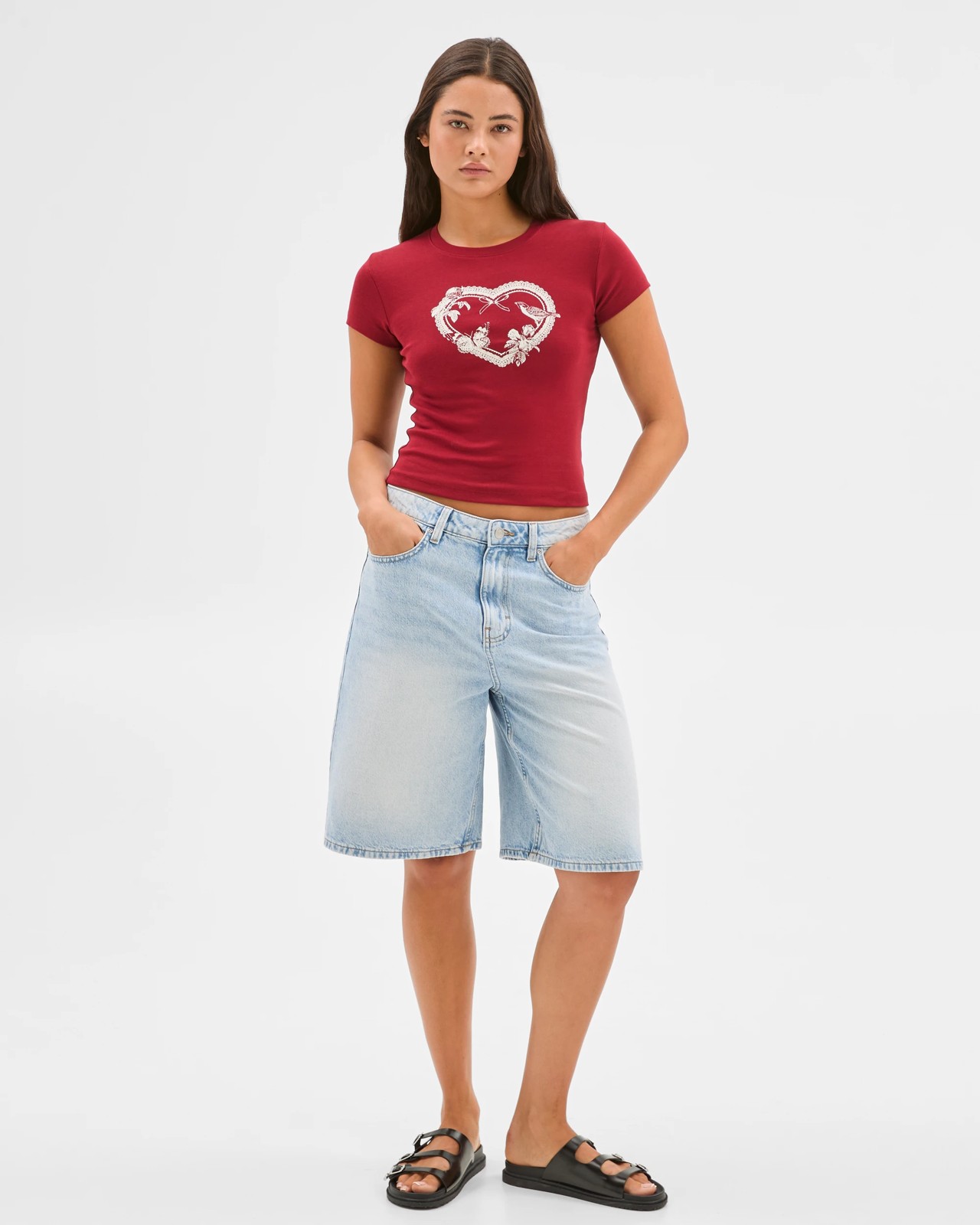 Australian Cotton Graphic Baby Crop T-Shirt - Lily Loves - Red Lace Heart