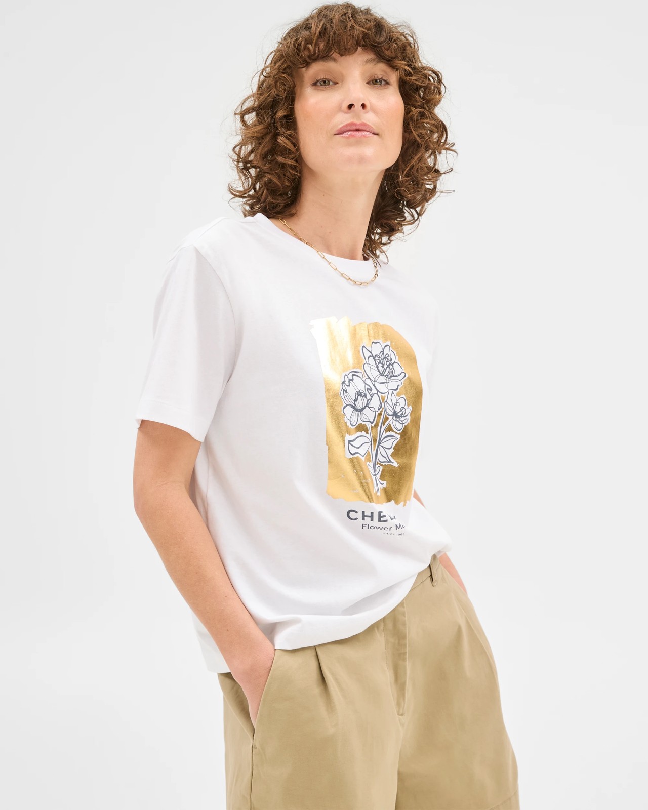 Bold chest print with wording CHELSEA FLOWER MARKET