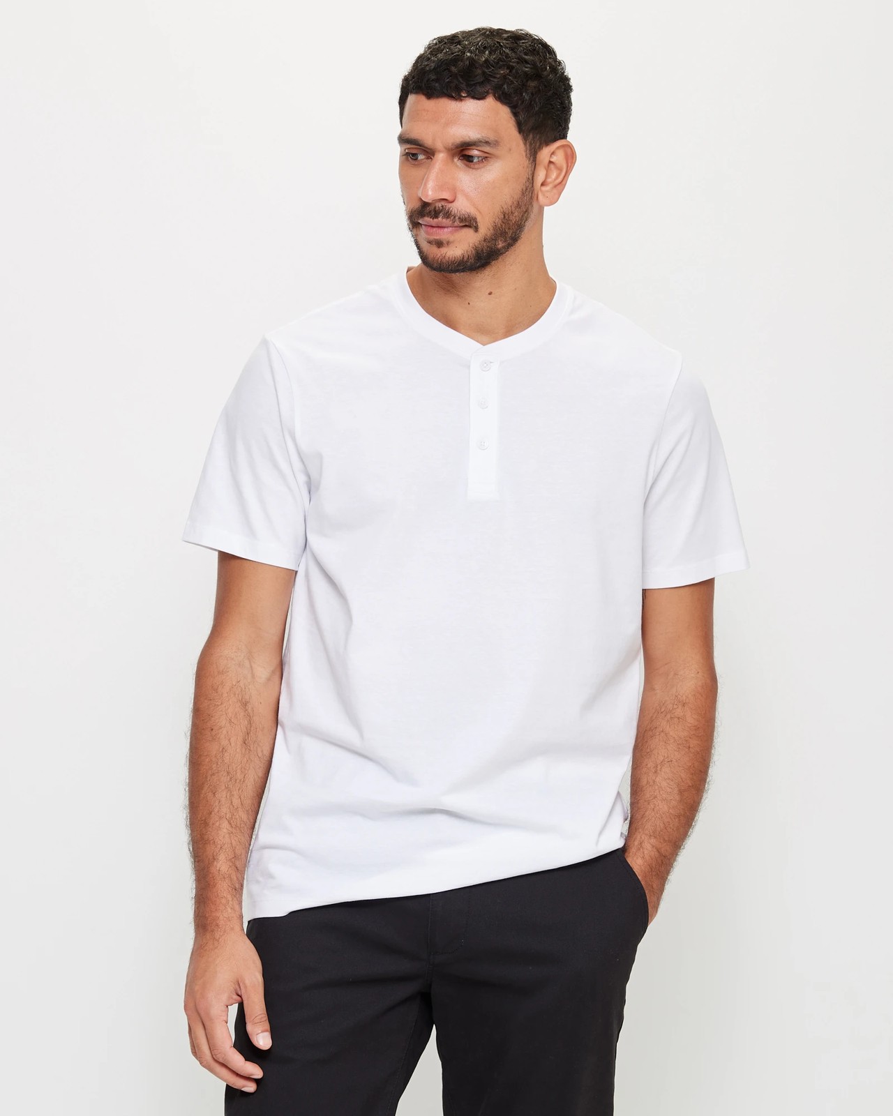 Buttoned henley neckline