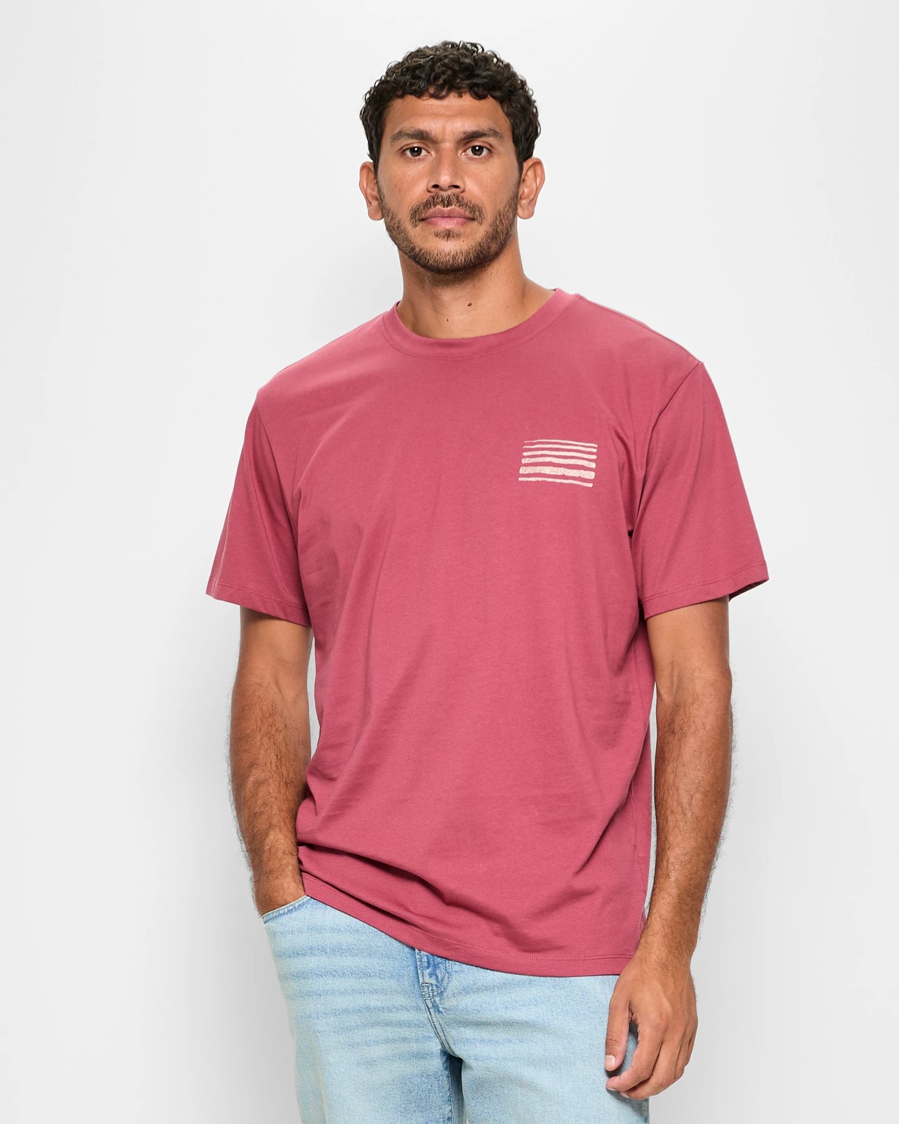 Experience unrivalled comfort and style with our Australian Cotton Horizon Print T-Shirt. Made using fine cotton, this maroon shirt is light and breathable, perfect for any laid-back occasion. The regular fit boasts a ribbed crew neckline, short sleeves, and an eye-catching print on the back. A subtle side print on the chest adds a unique touch. Refresh your wardrobe and stand out with this versatile piece.