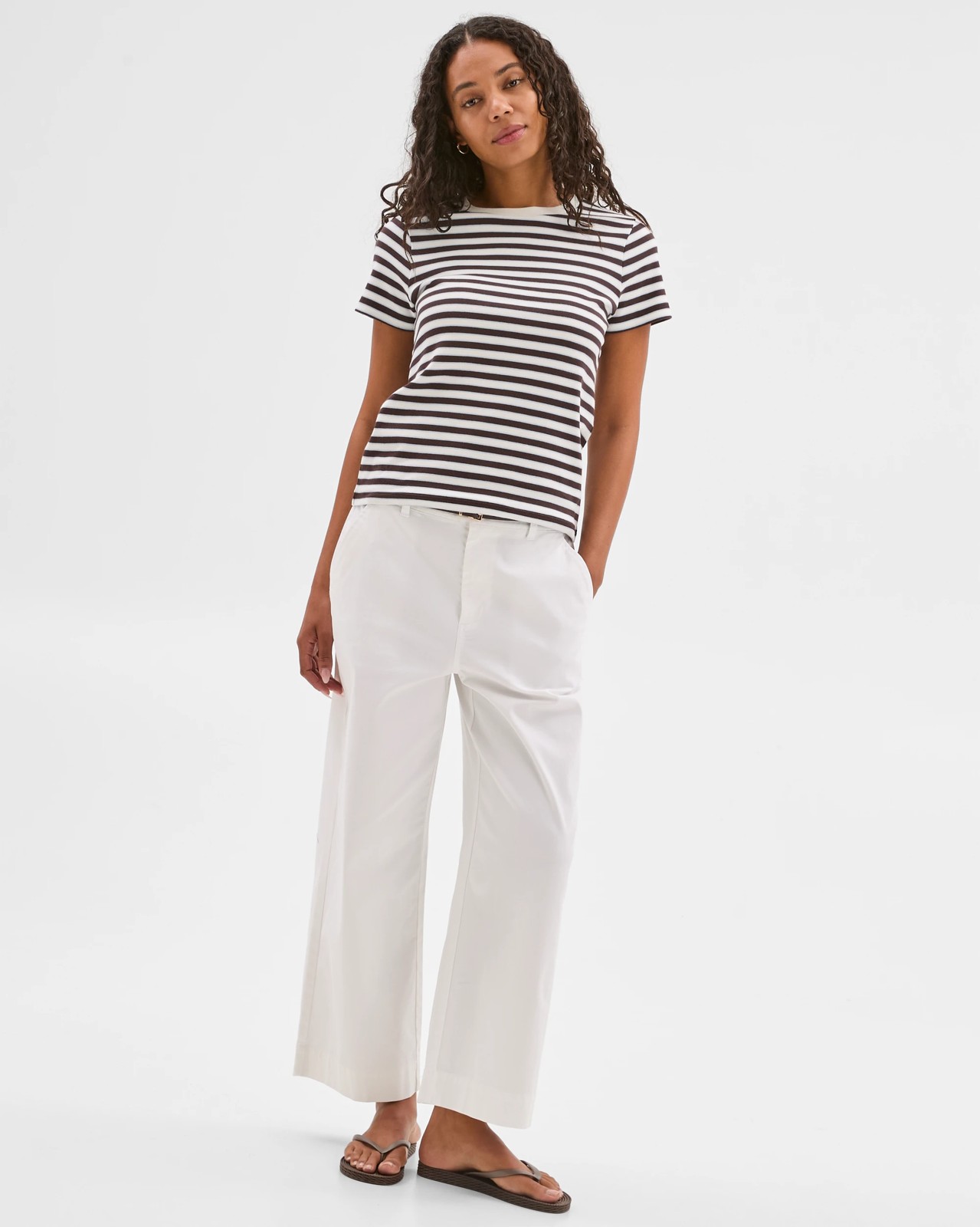 Australian Cotton Interlock Neat T-Shirt - Cloud Dancer/Brunette/Hydrangea