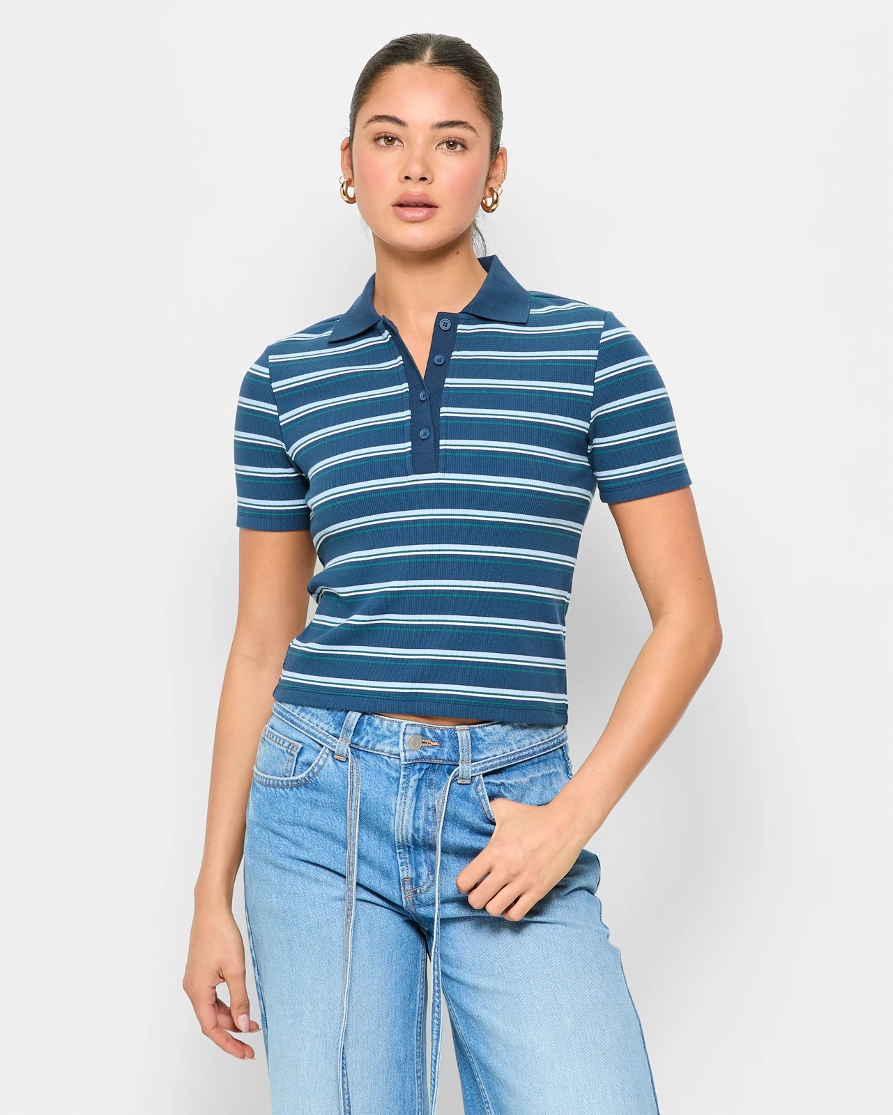 Enjoy relaxed comfort and timeless style with this Lily Loves Australian cotton knit polo top. Its velvety ribbed texture pairs with a hint of stretch, ensuring you feel at ease through your entire day. With vibrant stripes and a rounded collar, this top offers a delightful twist on the familiar polo. The button-down front and short sleeves make it simple to wear for social occasions or while spending time with friends. Light and airy, it easily becomes your favourite choice to complement your personality and lifestyle. Give your wardrobe a refreshing touch now.