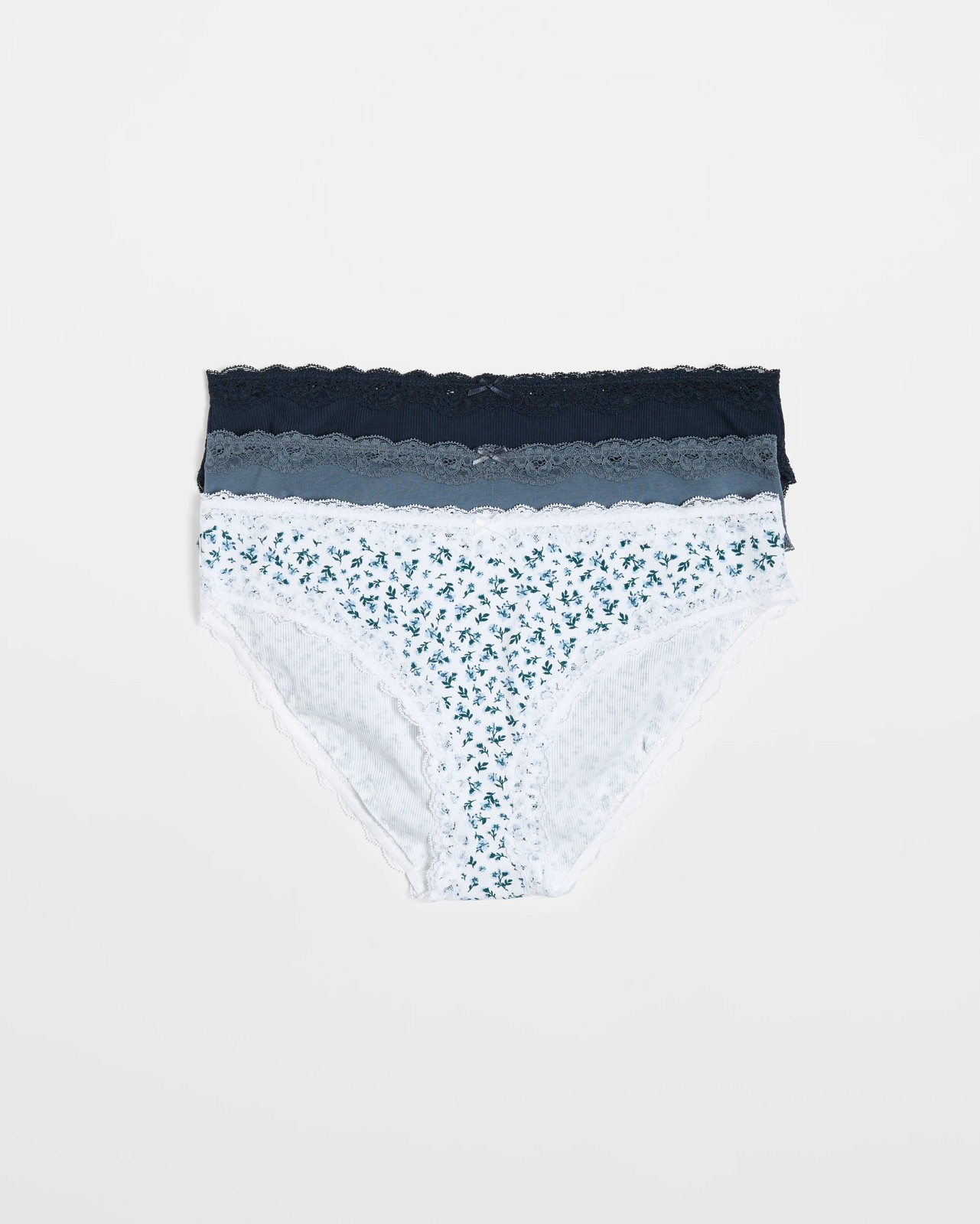 Australian Cotton & Lace 3 Pack Bikini Briefs - Blue Ditsy Floral/Blue/Navy