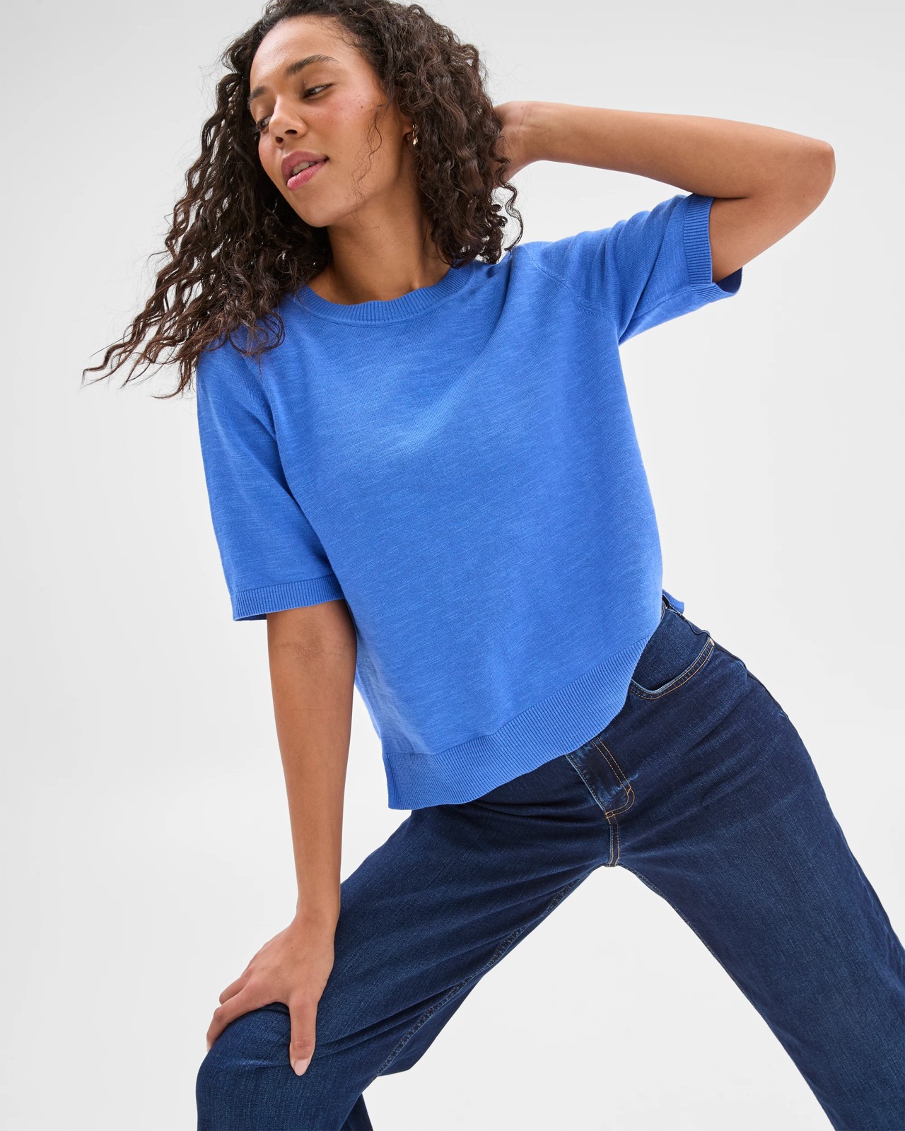 Australian Cotton/Linen Blend Knitted T-Shirt - Vivid Blue