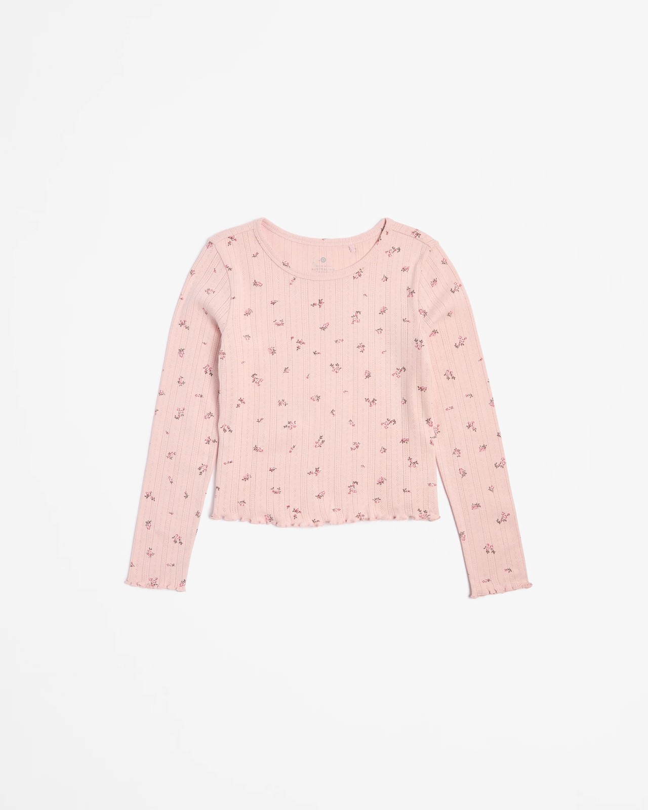 Dress your little one in comfort and style with our Australian Cotton Long Sleeve Pointelle Top. Made from high-quality cotton, this top ensures softness throughout the day, perfect for any activity. The charming pointelle pattern adds a touch of finesse, while the regular fit and crew neck guarantee an easy wear. Featuring long sleeves with delicate lettuce cuffs and a straight hem, this top brings a playful yet refined look to her wardrobe. Make this versatile piece a staple in her collection.