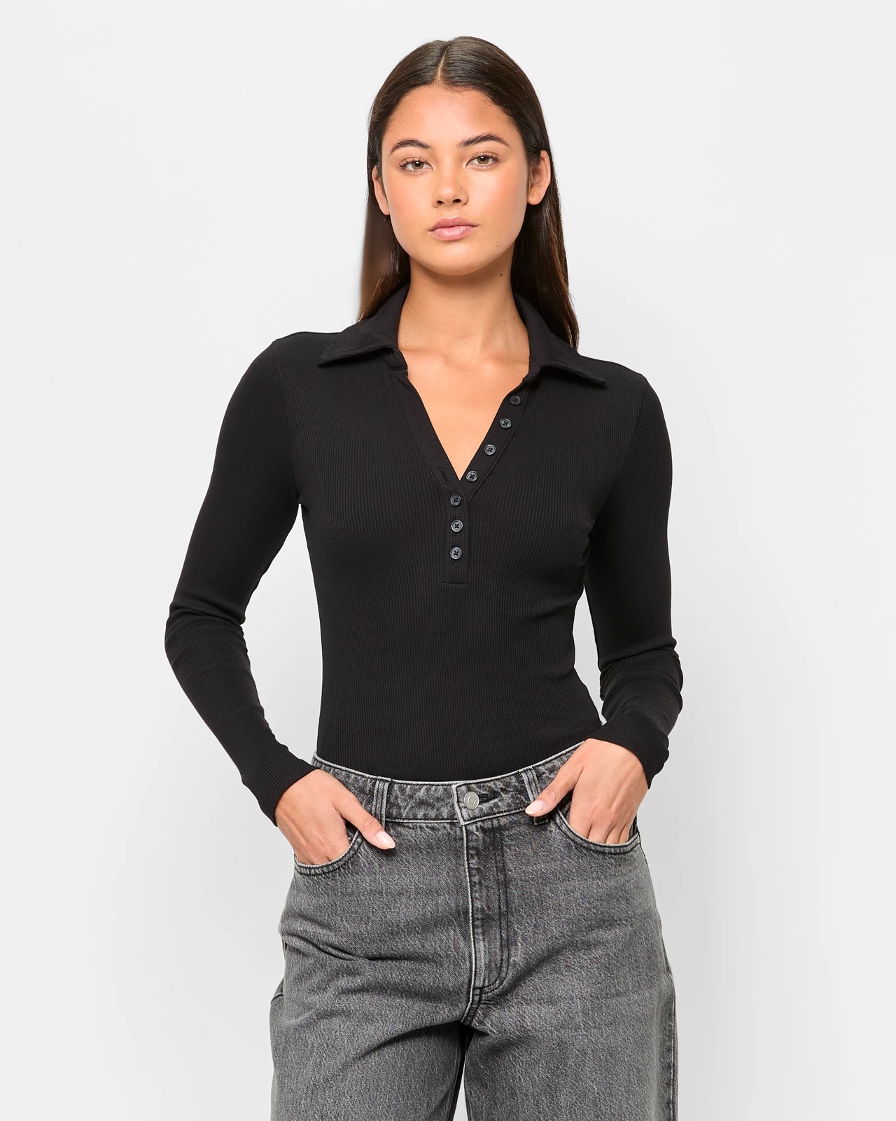 Australian Cotton Long Sleeve Rib Polo Bodysuit - Lily Loves