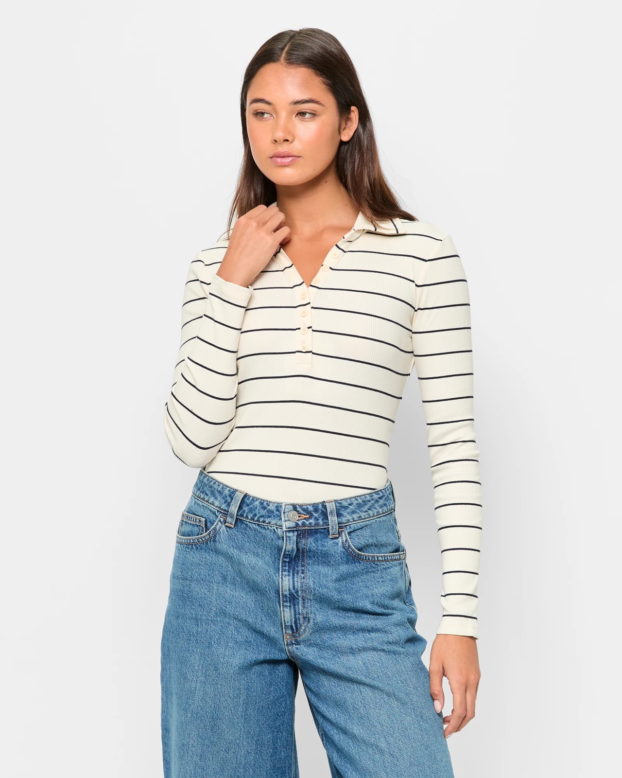 Australian Cotton Long Sleeve Rib Polo Bodysuit - Lily Loves