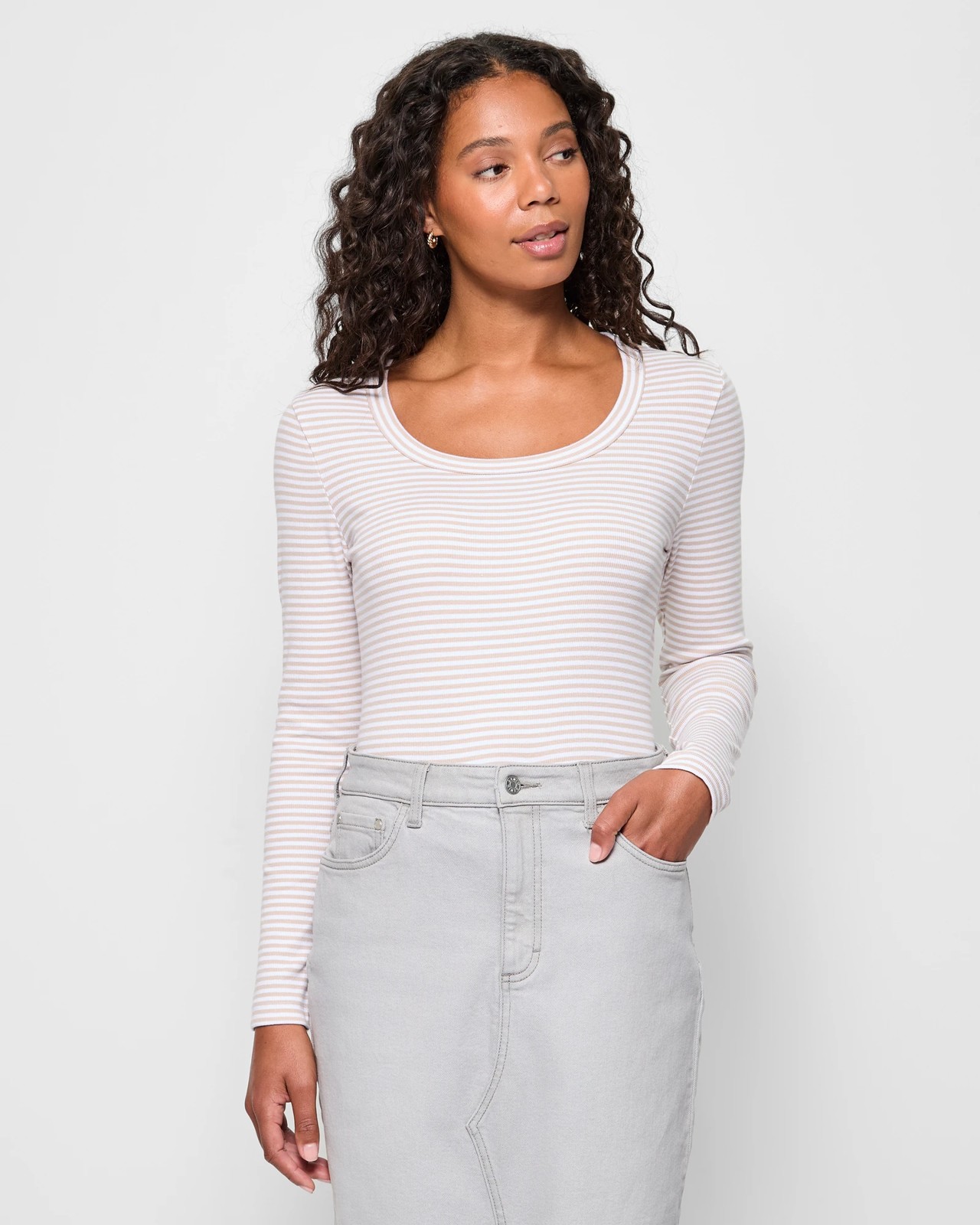Australian Cotton Long Sleeve Scoop Neck Ribbed T-Shirt
