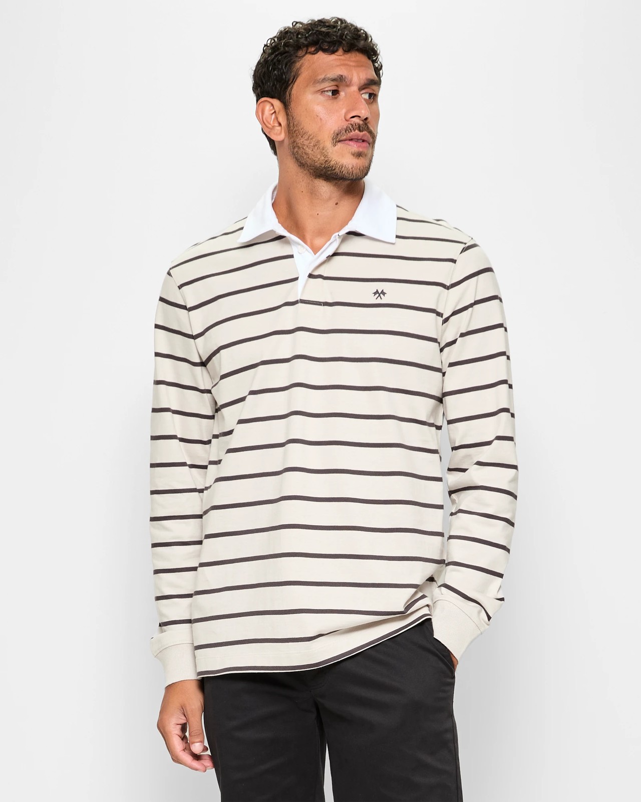 Australian Cotton Long Sleeve Stripe Rugby Polo Top