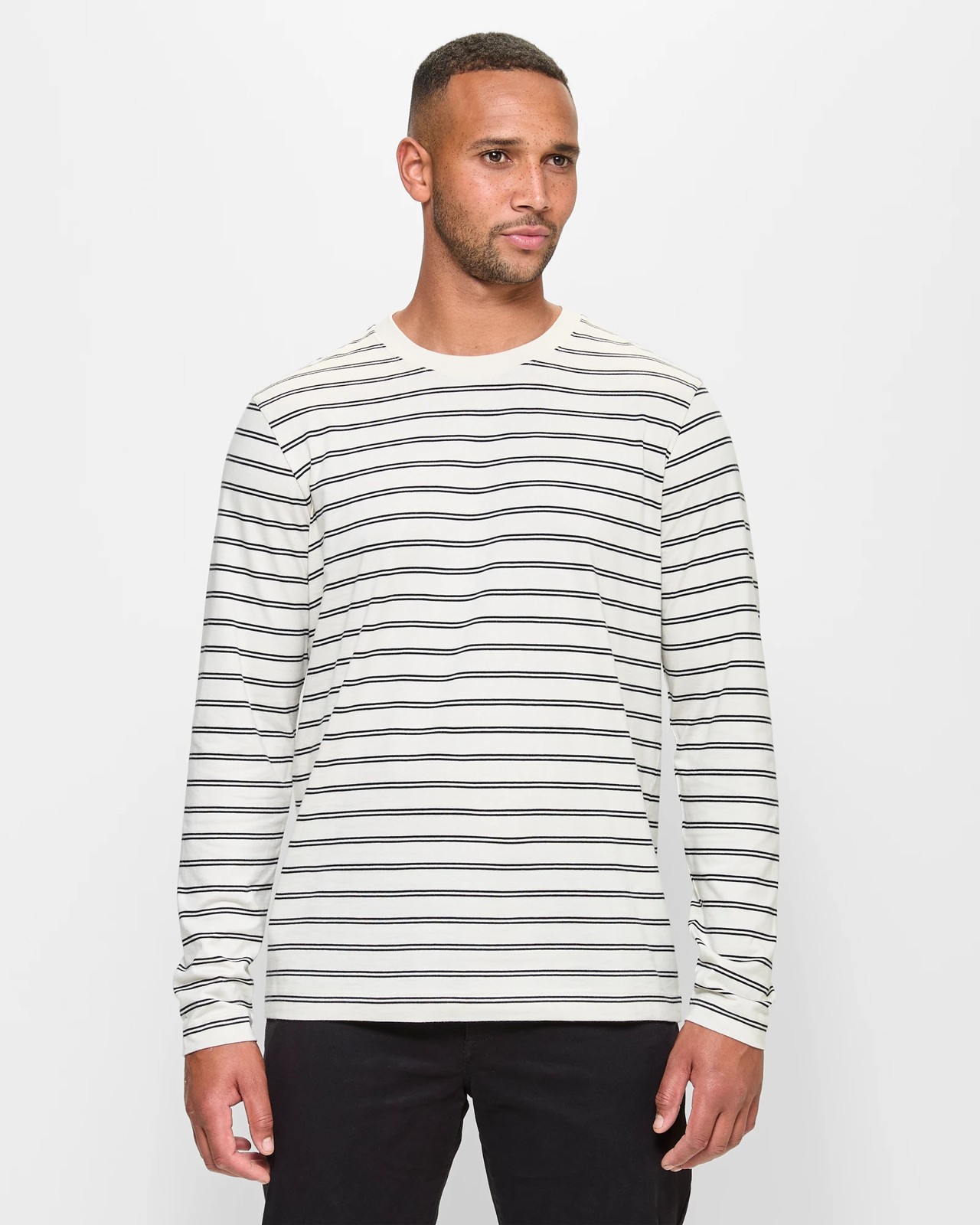 Experience superior comfort with this Australian Cotton Long Sleeve Stripe T-Shirt. Made using high-quality cotton, it provides a light and airy feel all day long. Boasting a regular fit with a classic ribbed crew neckline and long sleeves, it's perfect for any laid-back occasion. The timeless stripe design adds an extra touch of style, whether you wear it alone or layered. Don't let this versatile staple be missing from your wardrobe.