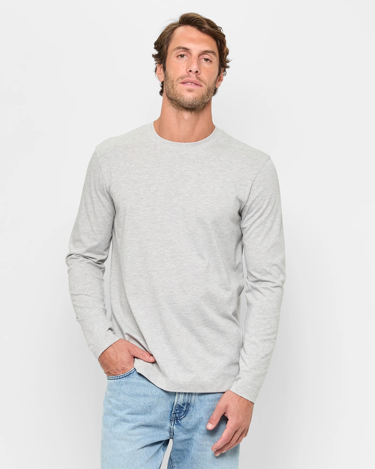 Australian Cotton Long Sleeve T-Shirt - Grey Marle