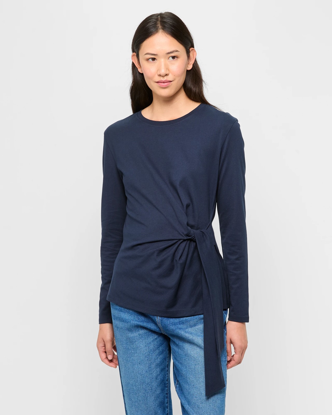 Indulge in the exceptional comfort of our Australian Cotton Long Sleeve Tie Waist Top. Made with the finest cotton, this top ensures a light and airy feel that's perfect for any weather. The ribbed crew neckline and standard fit offer timeless appeal, while the tie waist detail provides a touch of style. Whether dressed up or down, this versatile top will quickly become a favourite in your collection. Treat yourself to something special today.