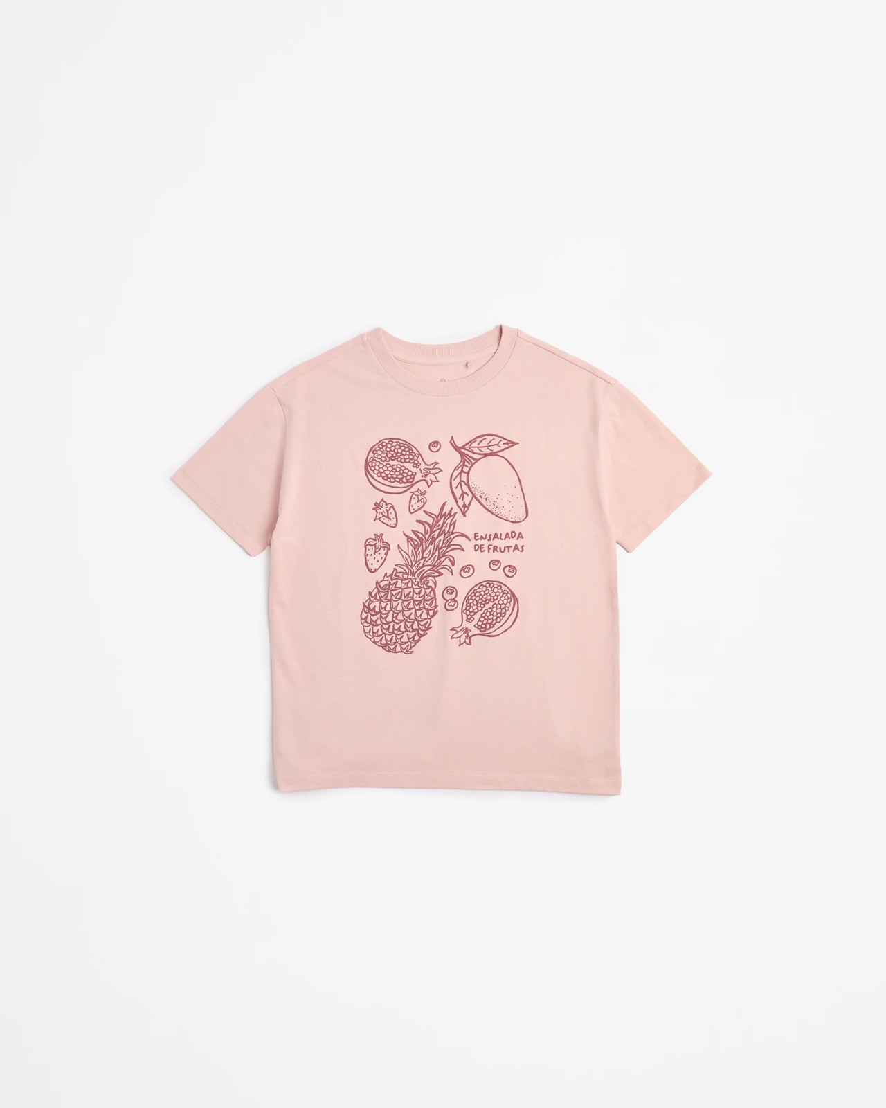 Australian Cotton Longline Print T-shirt - Pink Fruit