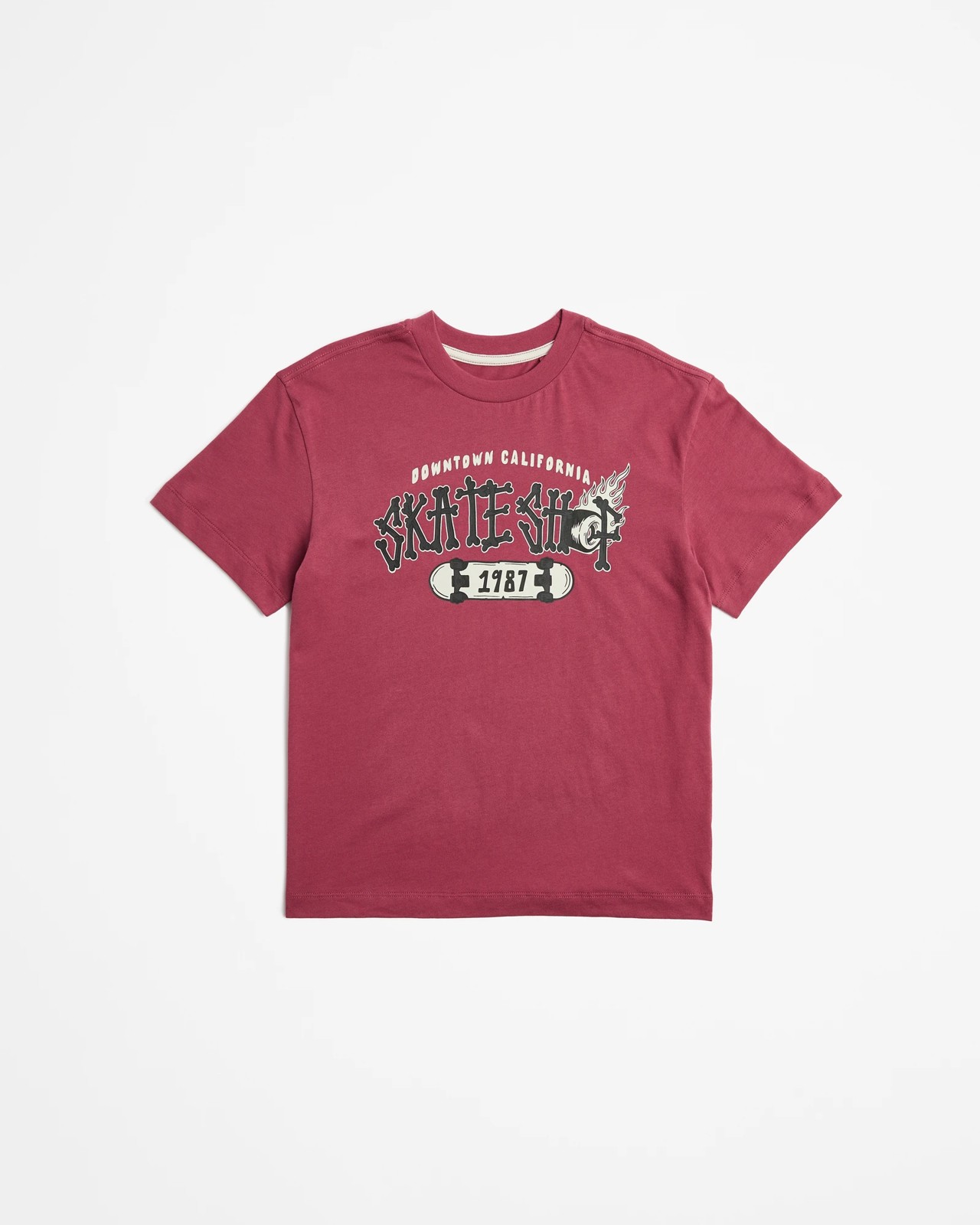 Australian Cotton Loose Fit Print T-shirt - Maroon Skate