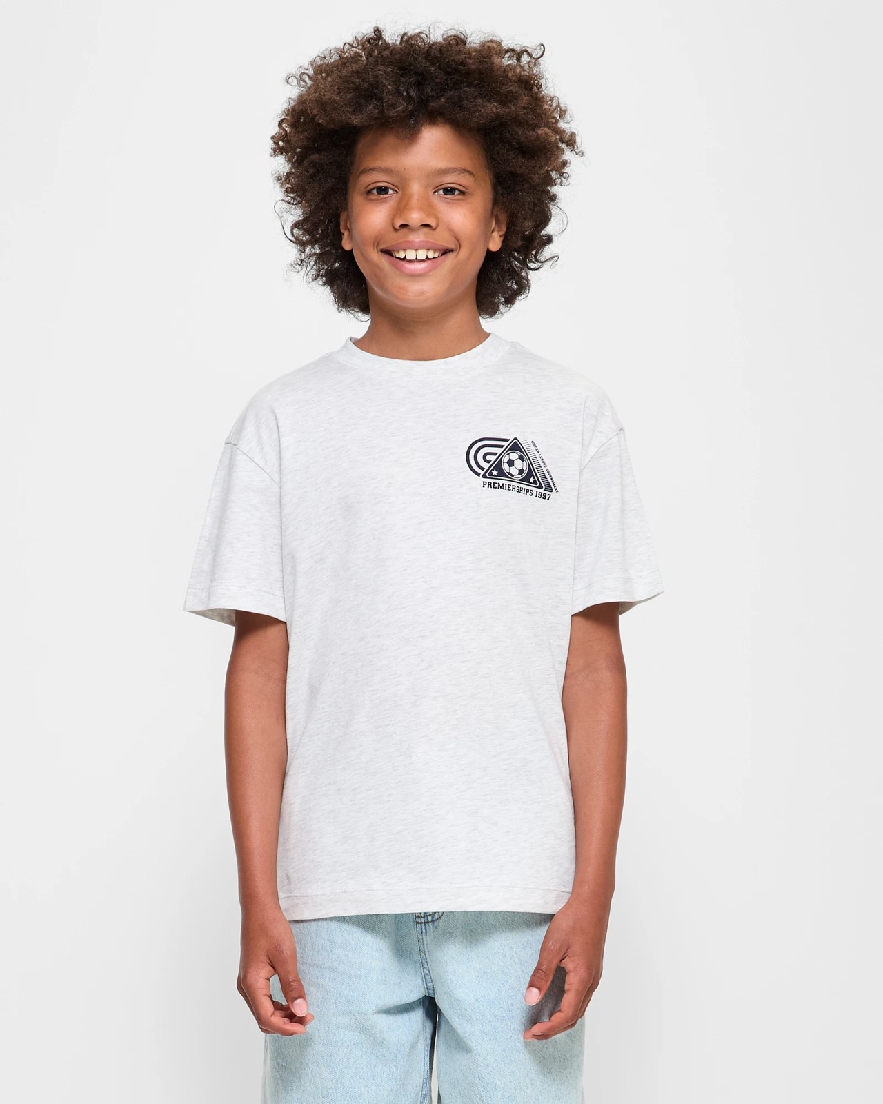 Australian Cotton Loose Fit Print T-shirt - Grey Marle Soccer