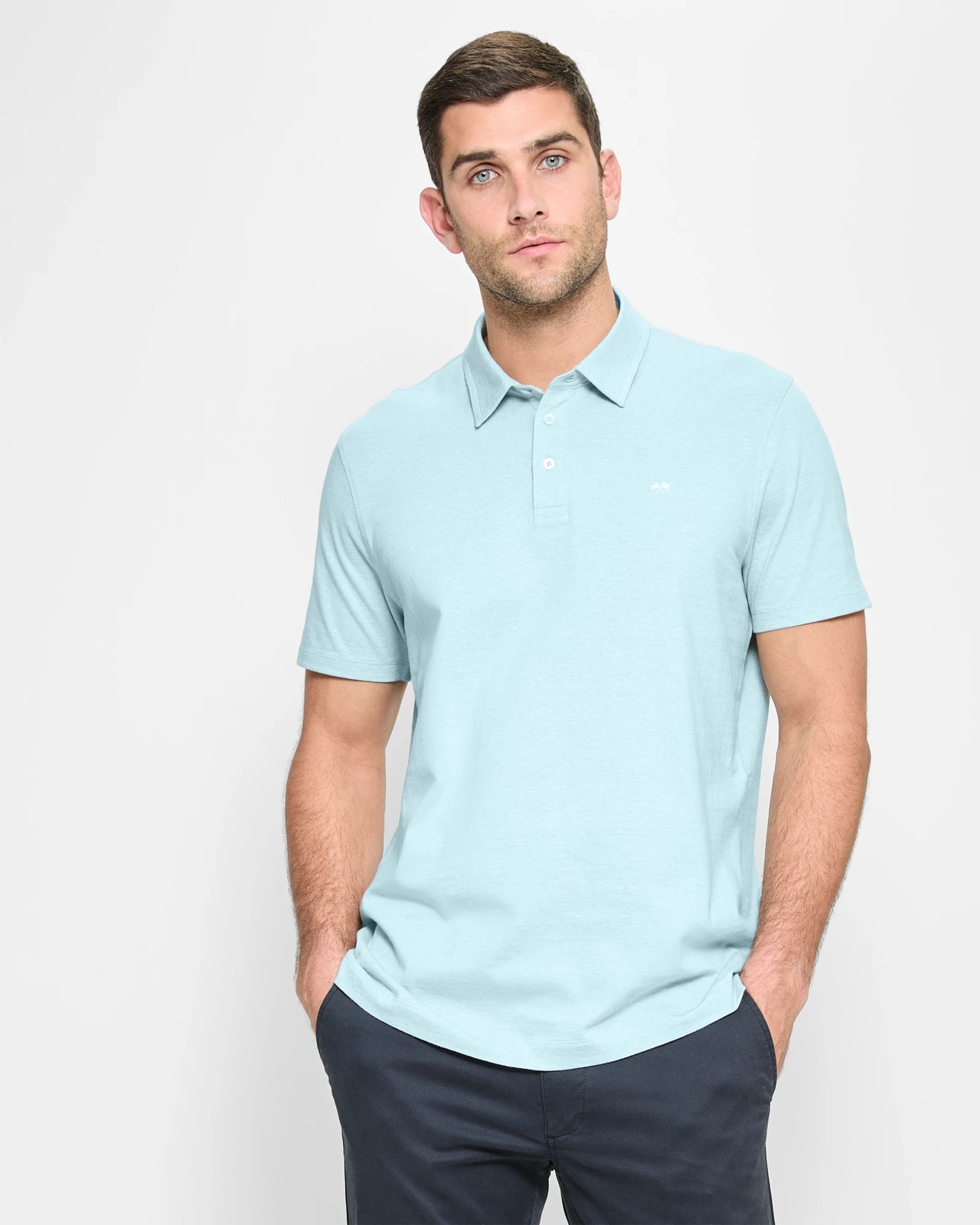 Experience ultimate comfort and style with our Australian Cotton Micro Stripe Polo Top. Designed for men who value both aesthetics and ease, this polo features breathable Australian cotton that feels light against the skin. Its regular fit and stylish micro stripe pattern, paired with a round collared neckline and button-down front, make it a versatile choice for any occasion. The short sleeves and embroidered cross over flags logo add to its appealing look. Don't miss out on this must-have addition to your wardrobe. Order now!