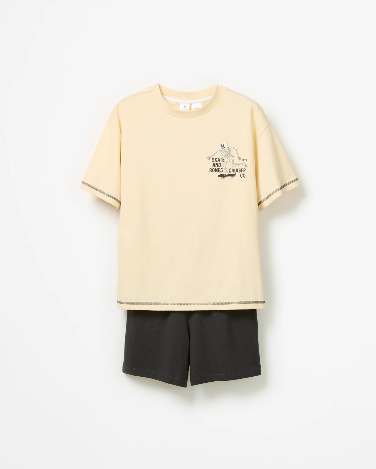 Australian Cotton Older Boys Oversized Short Pyjama Set - Skeleton