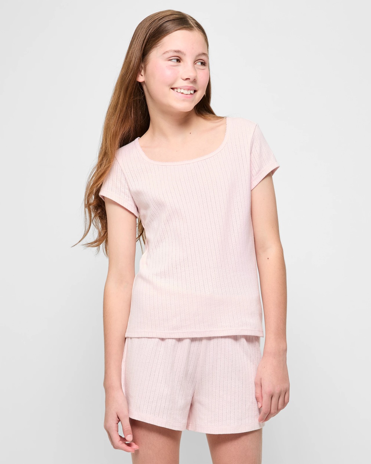 Australian Cotton Older Girls Pointelle Pyjama Set - Pink