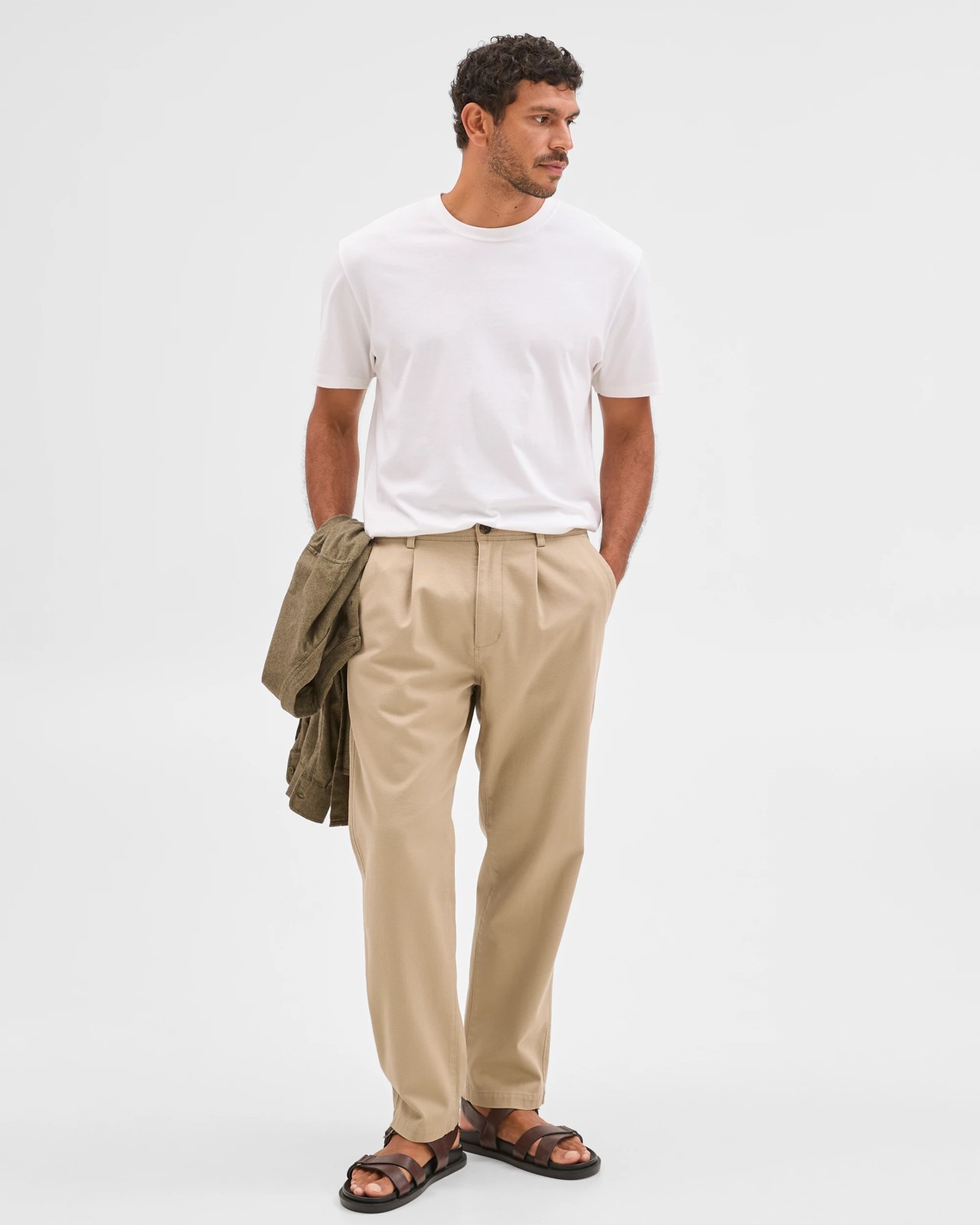 Australian Cotton Pleated Textured Chino Pants - Neutral