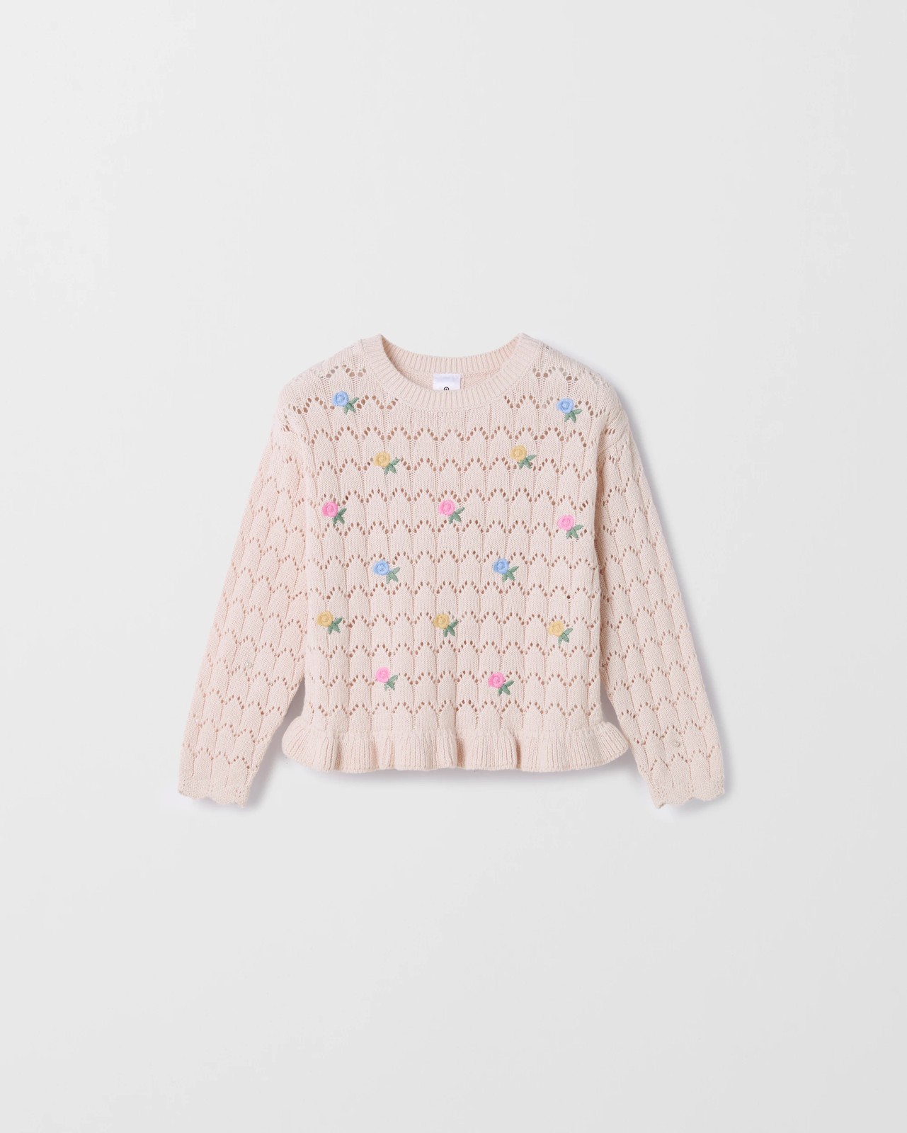 Australian Cotton Pointelle Embroidered Sweater - Cream