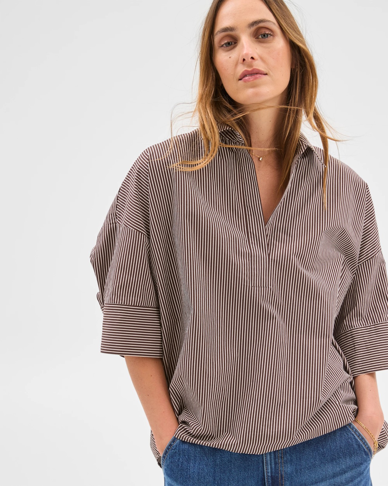 Discover the ultimate blend of comfort and style with our Australian Cotton Poplin Popover Shirt. Picture yourself breezing through your day feeling relaxed and put-together from the first cup of coffee to evening catch-ups with friends. Made from soft cotton grown in Australia, this popover shirt is designed to suit a range of occasions, making it a wardrobe essential you'll reach for time and again. The round neckline with a unique v-drop brings just the right amount of charm, while short cuffed sleeves and a drop shoulder provide an easygoing feel you’ll love. The straight hem allows for both tucked and untucked looks, giving you flexible styling options. Make this your go-to shirt and enjoy a new kind of everyday confidence—add it to your collection today.