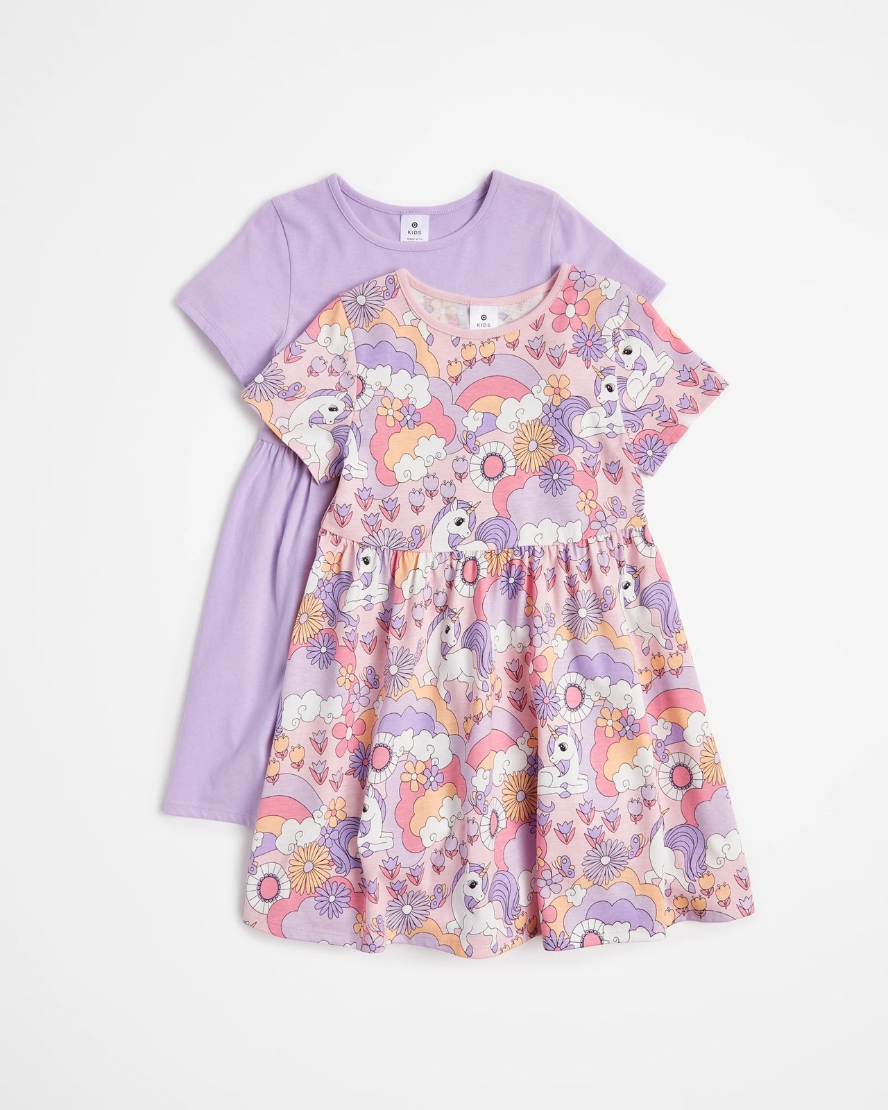 Wrap your little one in comfort and style with our range of adorable print dresses. Crafted from high-quality Australian cotton, these dresses offer a regular fit and feature a crew neck, short sleeves, and a gathered elastic waistband for the perfect blend of comfort and style. With a variety of colours and prints to suit every personality, your little girl will love twirling in our dresses. Elevate her wardrobe with our convenient and stylish two-pack option. Update her look effortlessly and let her personality shine through!