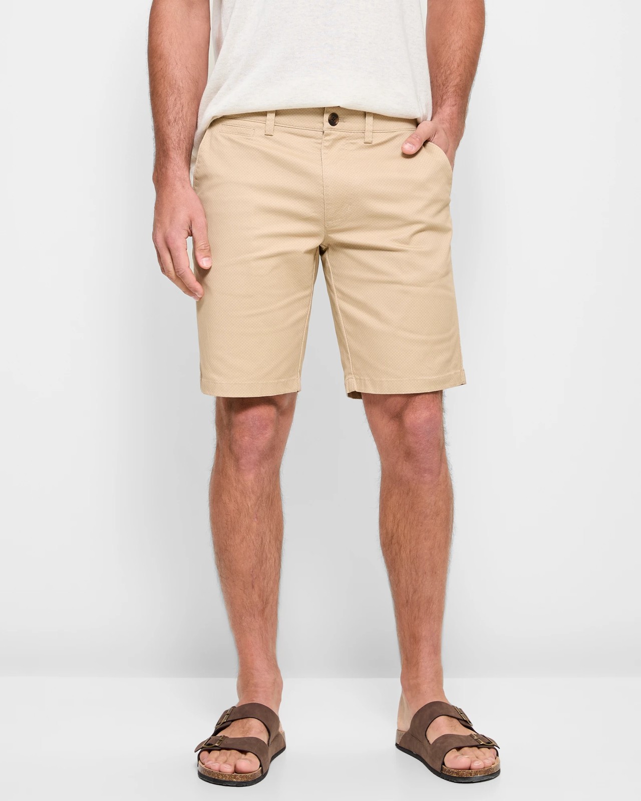 Step into comfort and style with our Australian Cotton Print Regular Chino Shorts. Made from a cotton-rich blend with just the right amount of stretch, these shorts provide all-day ease for any adventure. Whether you're out for a casual day in the city or exploring the great outdoors, the classic chino design with a safari-inspired print adds a touch of sophistication to your look. Featuring a structured waistband, side and back pockets, and a straight hemline, these mid-length shorts are as functional as they are stylish. Grab a pair in your size and refresh your summer wardrobe today.