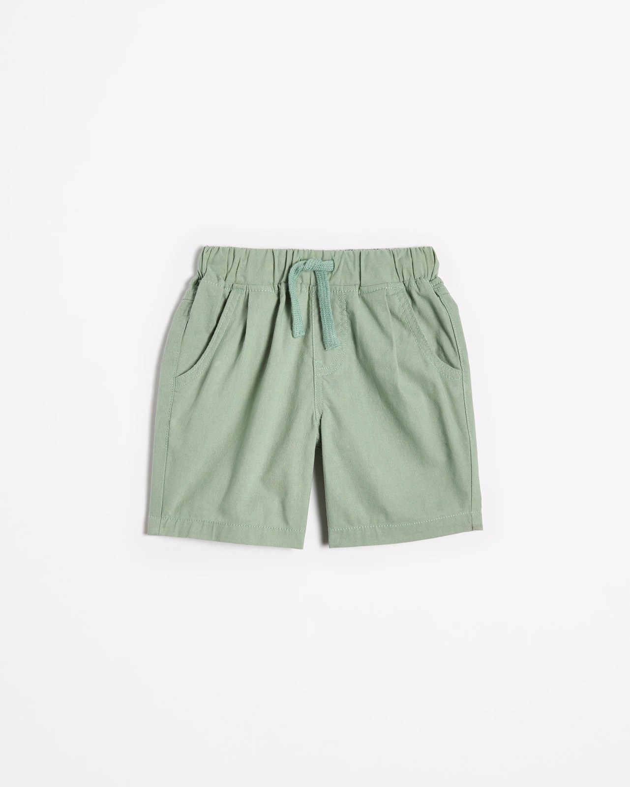 Experience the comfort and convenience of these pull on woven shorts, made from soft Australian cotton. Designed for easy dressing, they feature a comfortable elastic waistband with a practical drawcord and handy side and back pockets for storing those small treasures. Perfect for energetic young boys, these shorts offer a relaxed regular fit and a classic short length, ideal for everyday outings or playdates in the park. Choose these versatile shorts to keep your little one stylish and ready for adventure. Make these shorts an essential part of your child's summer wardrobe.