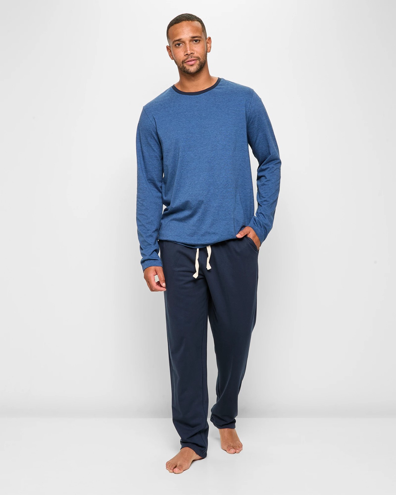 Experience ultimate comfort with our Australian Cotton Pyjama Sleep Set for men. Made from high-quality Australian cotton, this set features a lightweight and breathable design for a restful night. The top includes a ribbed crew neckline and long sleeves with an all-over stripe pattern for a touch of style. The pants are practical with an elastic waistband with drawstring and convenient side pockets. Enjoy cosy evenings with this finely tailored two-piece set that promises relaxed nights and refreshing mornings.