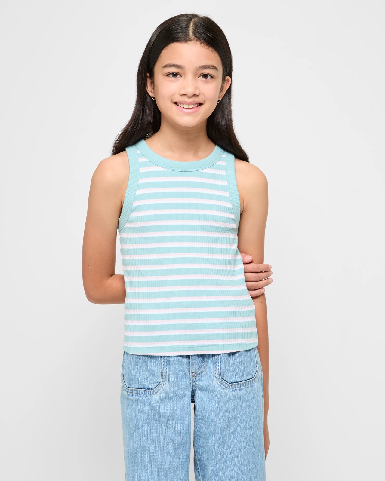 Australian Cotton Racer Back Rib Tank - Aqua Stripe