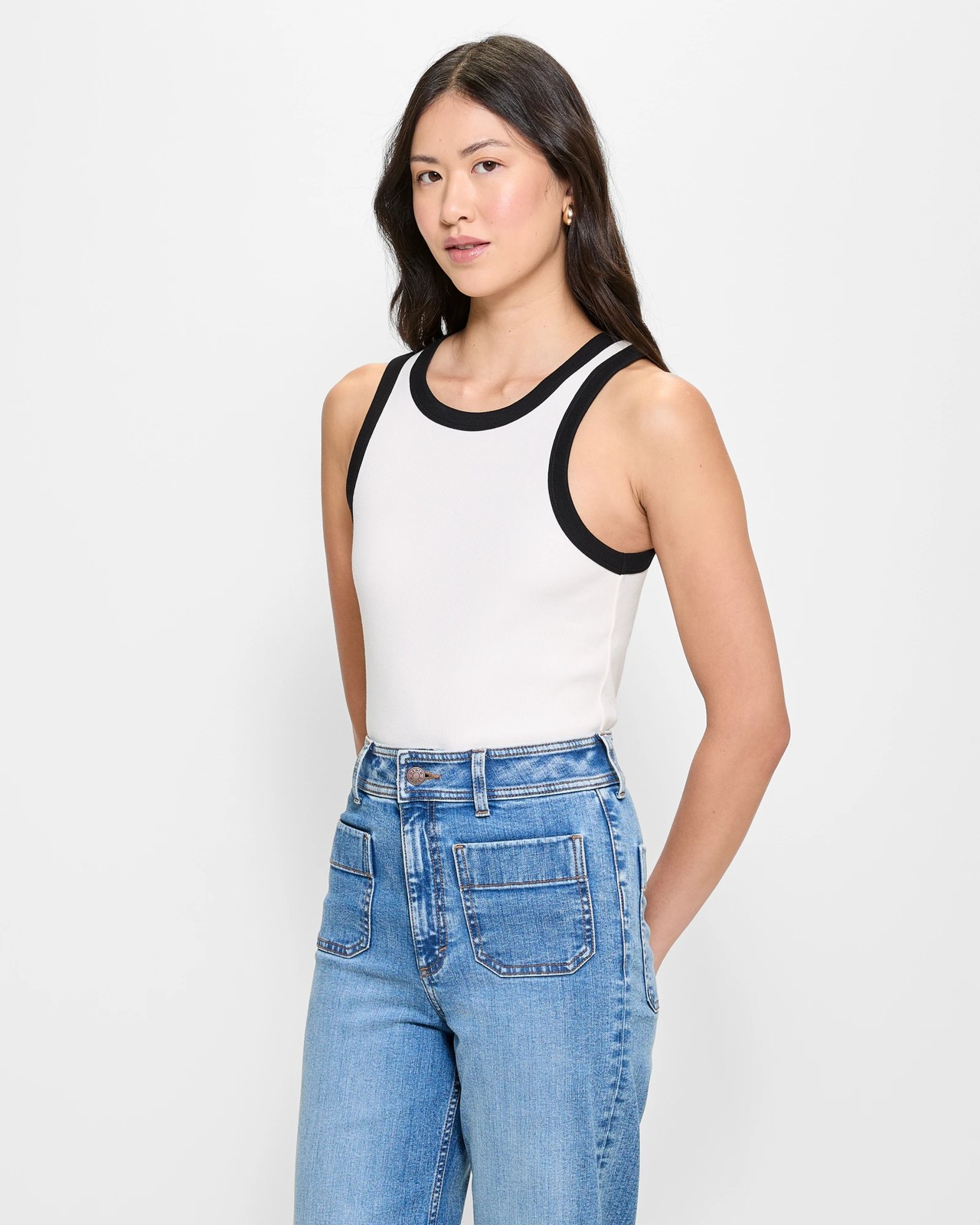 Take your casual style to the next level with our Australian cotton racer tank. Crafted from a cotton rich fabrication, this tank features a slim fit and stretch for comfort. With its scoop neckline and thick ribbed shoulder straps, you'll enjoy the racer front and back cut for an edgy look. The straight hemline adds an extra touch of detail to this must-have piece. Perfect for layering or wearing as is, this tank top is sure to become a go-to in your wardrobe!