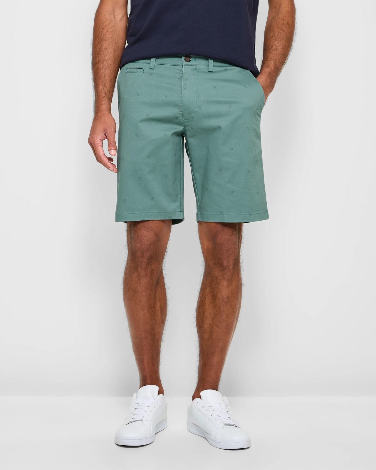 Discover the charm and comfort with our Australian Cotton Regular Stretch Chino Shorts. Made from a cotton-rich fabric enhanced with elastane, these shorts promise unparalleled comfort and flexibility. The light and breathable material, combined with a regular fit and stylish all-over leaf print, makes these shorts a must-have. Ideal for casual outings, these shorts feature a structured waistband, front button and zip closure and multiple pockets for practicality. Embrace effortless style and make these your go-to choice for sun-soaked days. Get yours now and enhance your summer wardrobe!