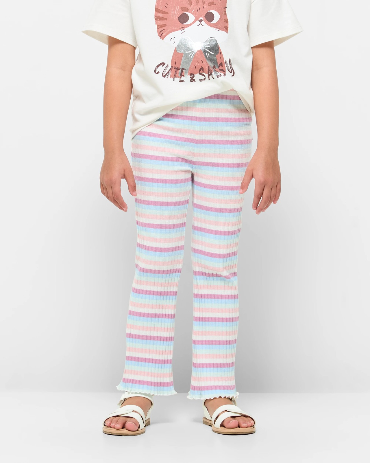 Australian Cotton Rib Flare Leggings - Multi Stripe