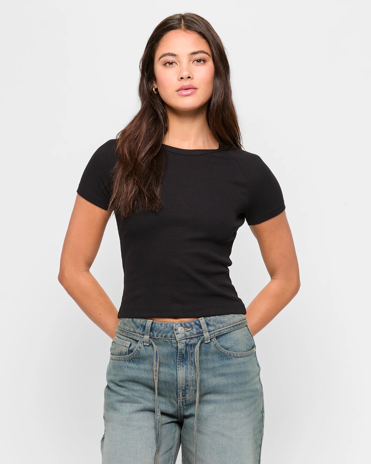 Enjoy superior comfort with the Australian Cotton Rib Raglan T-Shirt from Lily Loves. Made from a high-quality cotton blend with added elastane, this tee offers a light and breathable sensation perfect for everyday wear. Its slim fit and ribbed texture impart a refined touch, while the crew neckline and short sleeves ensure a timeless appeal. The short length and straight hemline complete its versatile design, making it a wardrobe essential for any occasion.
