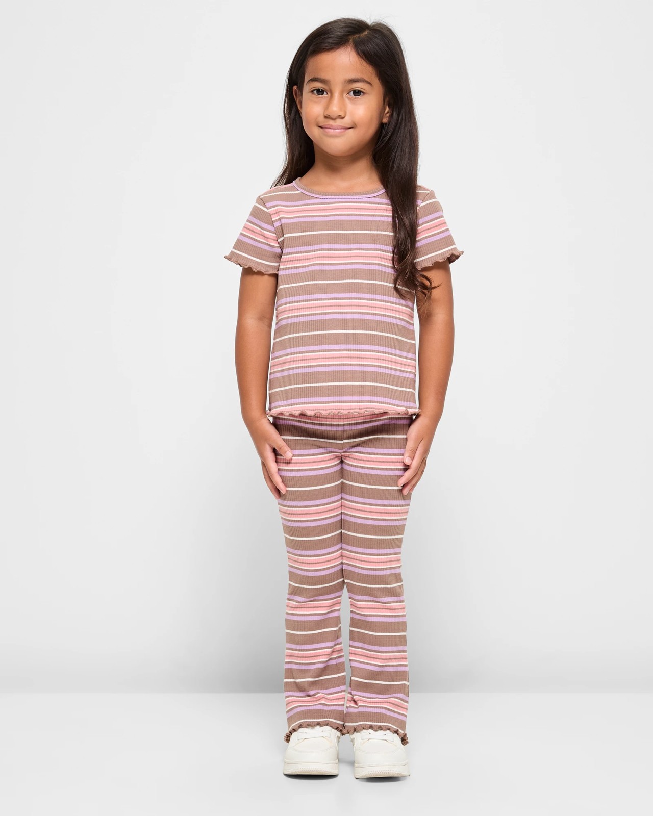 Designed for both comfort and style, this Australian Cotton Rib T-shirt and Legging Set is perfect for active little girls. Featuring a delightful all-over print, the set includes a crew neck tee with charming lettuce cuffs and hem, matched perfectly with equally adorable leggings boasting an elastic waistband and lettuce cuffs. Ideal for playdates or casual outings, this two-piece set ensures your girl feels and looks fantastic. Upgrade her wardrobe with this cute and comfortable ensemble today.