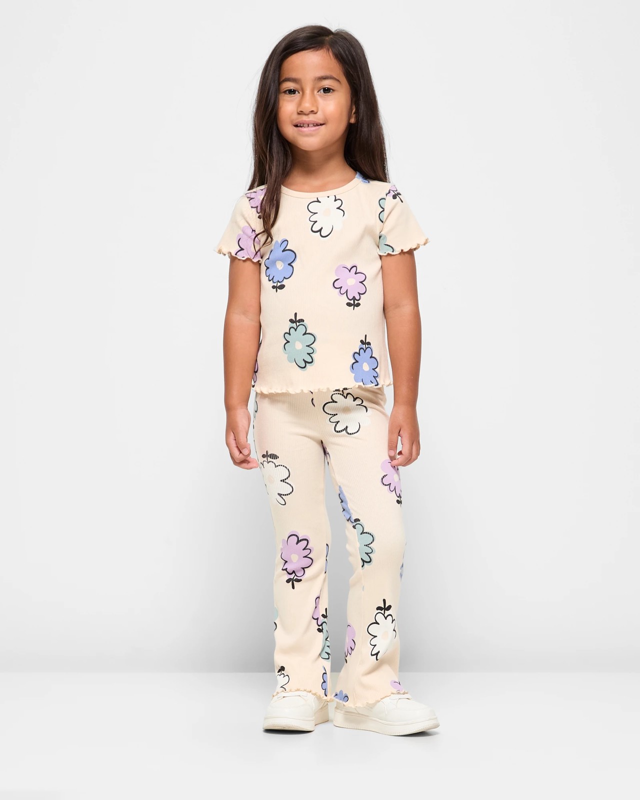 Designed for both comfort and style, this Australian Cotton Rib T-shirt and Legging Set is perfect for active little girls. Featuring a delightful all-over print, the set includes a crew neck tee with charming lettuce cuffs and hem, matched perfectly with equally adorable leggings boasting an elastic waistband and lettuce cuffs. Ideal for playdates or casual outings, this two-piece set ensures your girl feels and looks fantastic. Upgrade her wardrobe with this cute and comfortable ensemble today.