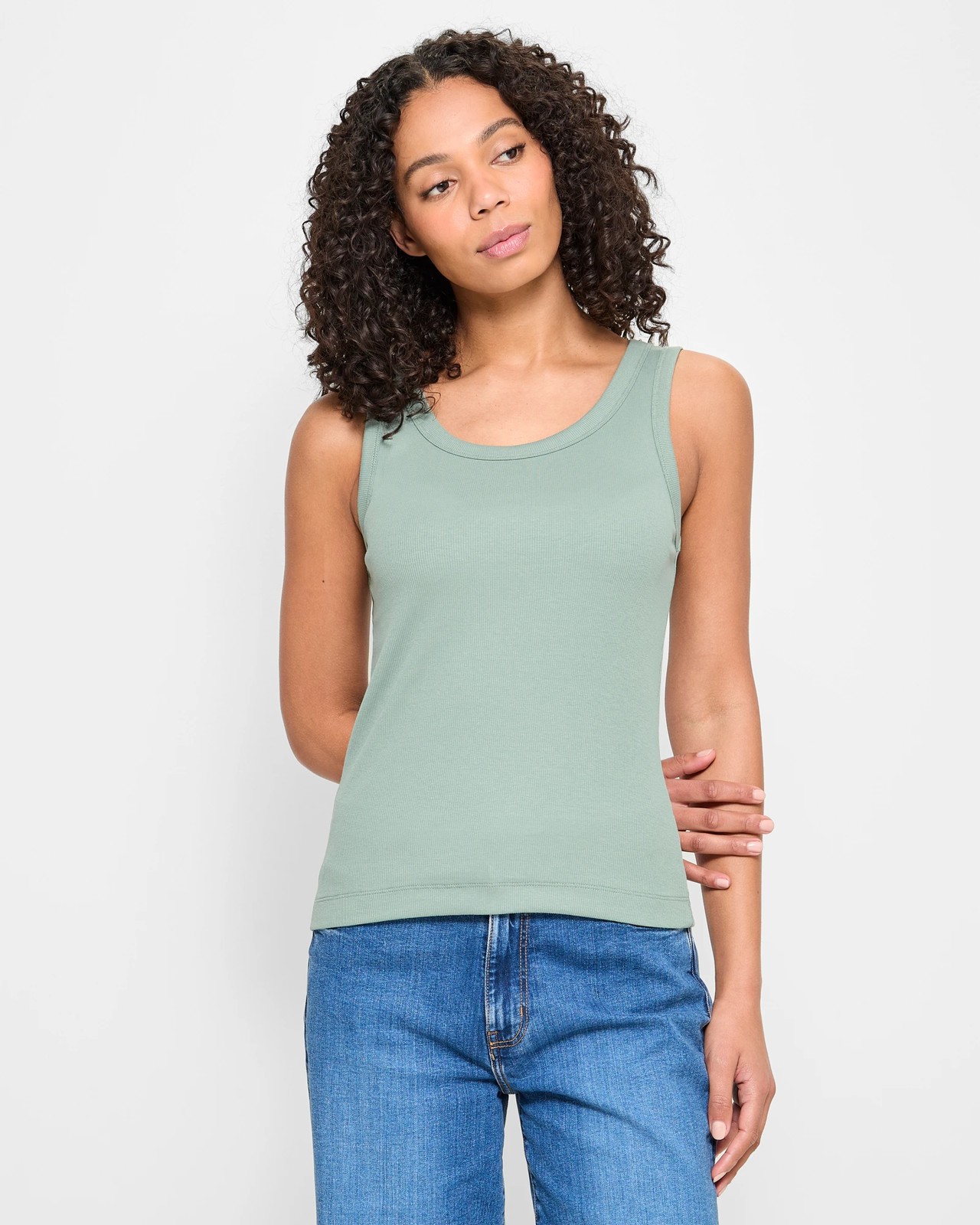 The perfect wardrobe essential, our Australian Cotton Rib Tank Top is made from a cotton rich fabrication with added stretch for extra comfort. It features a slim fit with a scoop neckline and thick shoulder straps. The sleeveless design has a straight hemline for a timeless look you'll love to wear all season long. Whether paired with your favorite jeans or skirt, this Australian Cotton Rib Tank Top will become your go-to piece for effortless style.