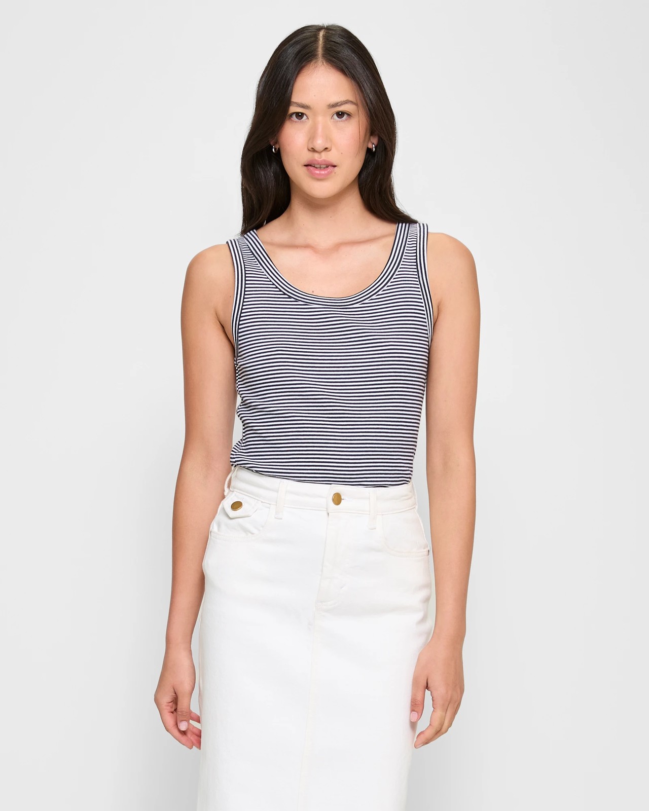 The perfect wardrobe essential, our Australian Cotton Rib Tank Top is made from a cotton rich fabrication with added stretch for extra comfort. It features a slim fit with a scoop neckline and thick shoulder straps. The sleeveless design has a straight hemline for a timeless look you'll love to wear all season long. Whether paired with your favorite jeans or skirt, this Australian Cotton Rib Tank Top will become your go-to piece for effortless style.