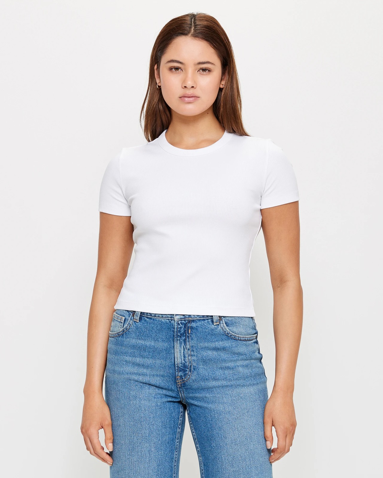 Australian Cotton Ribbed Hip Line Crew T-Shirt - Lily Loves