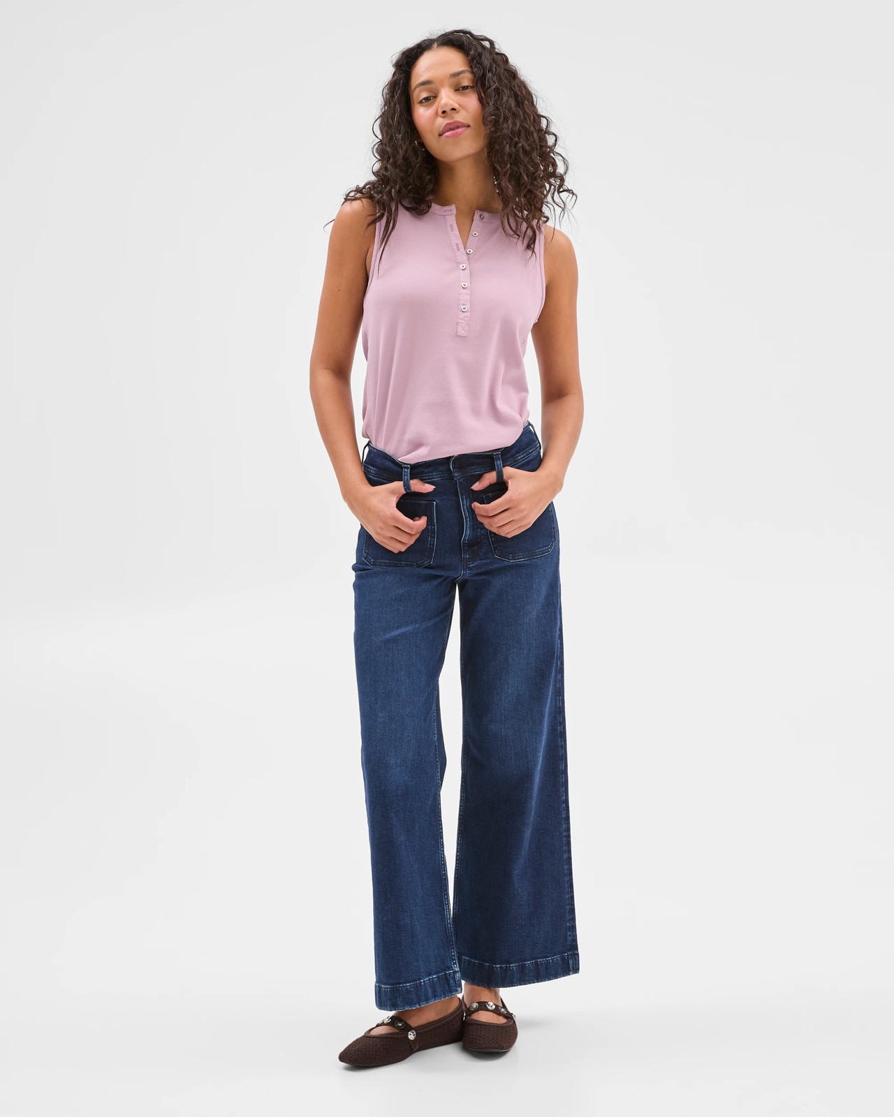 Australian Cotton Ribbed Sleeveless Henley Tank Top - Wisteria