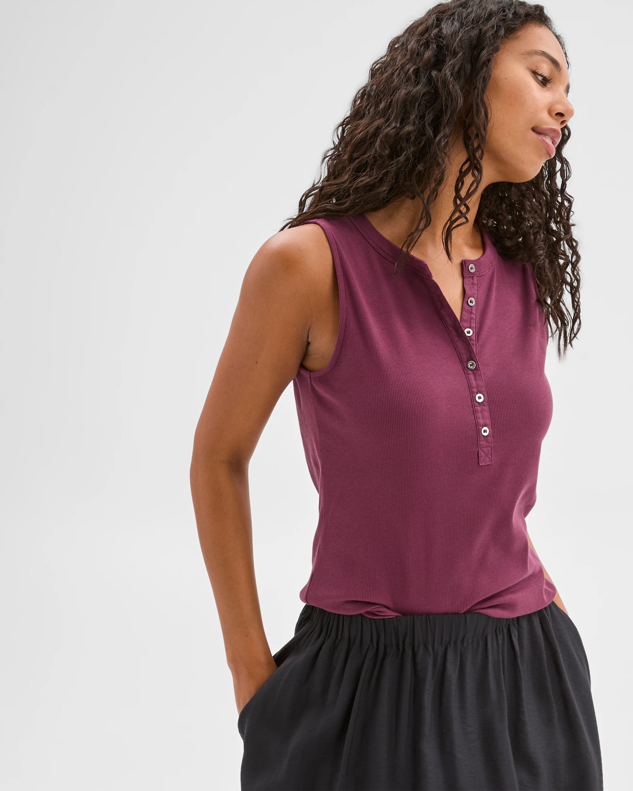 Australian Cotton Ribbed Sleeveless Henley Tank Top