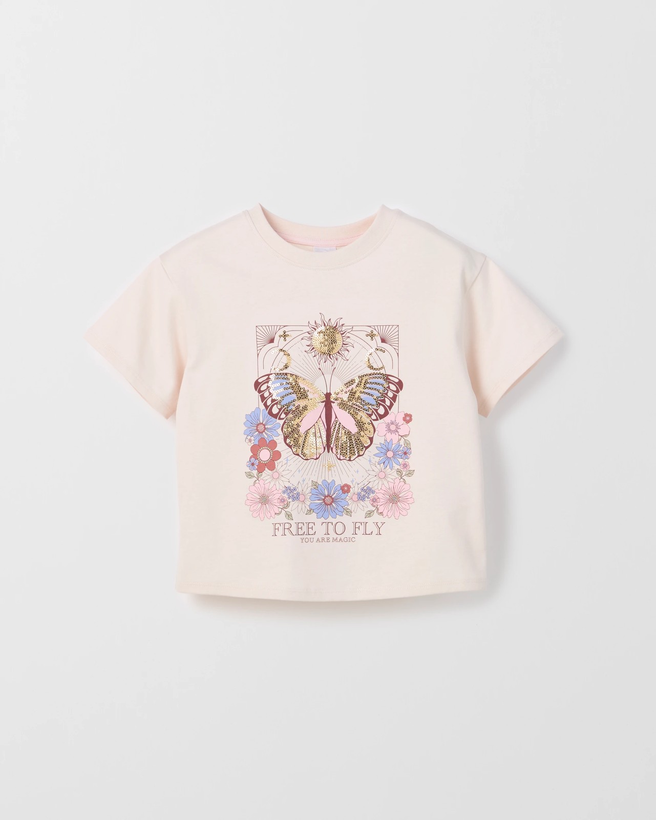Australian Cotton Short Sleeve Fashion T-Shirt - Butterfly Cream