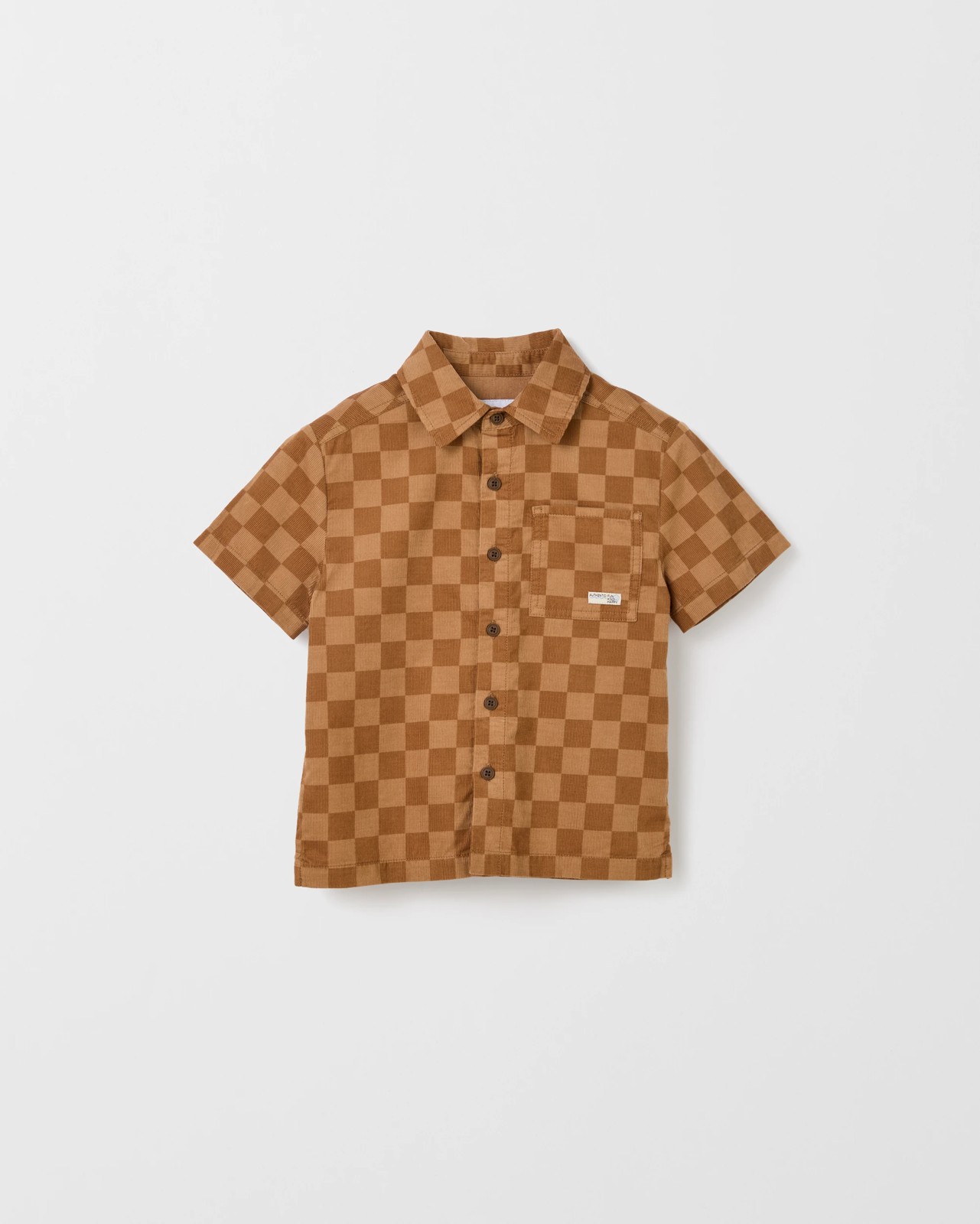 Australian Cotton Short Sleeve Mini Cord Shirt - Tigers Eye