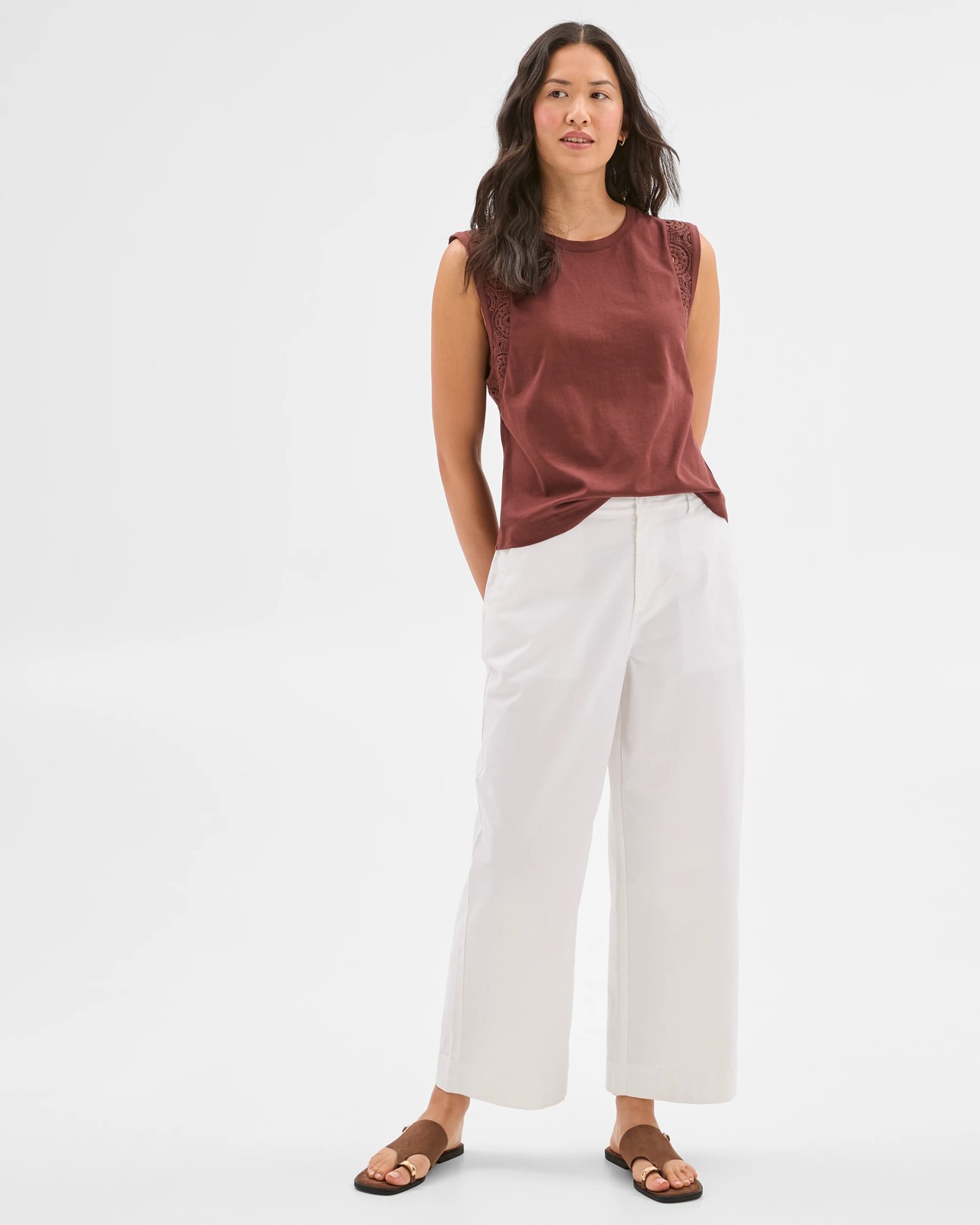 Australian Cotton Sleeveless Crochet Tank Top - Redwood