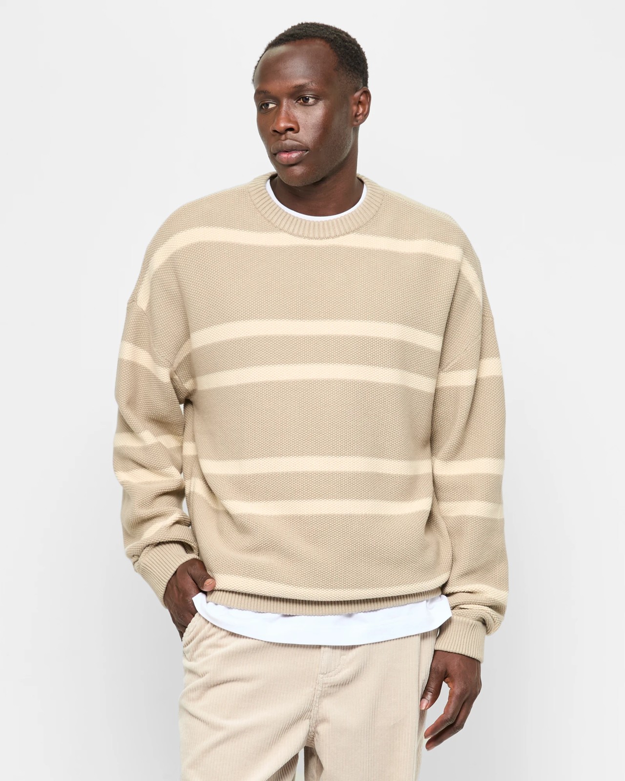 Experience the ultimate in comfort and style with this Australian cotton striped knit jumper. The breathable material keeps you feeling cool and snug all day, with a delightfully soft touch against the skin. This oversized fit jumper features a timeless stripe design and is perfect for any occasion. Designed with a ribbed crew neckline and long cuffed sleeves, it effortlessly combines functionality with chic appeal. Ideal for layering or wearing alone, this jumper will quickly become your favourite piece for easy, everyday fashion.