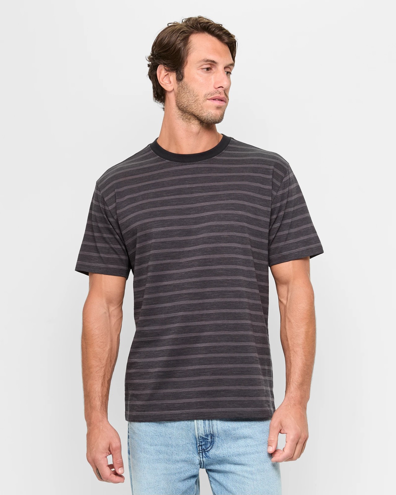 Discover the comfort and style of our Australian Cotton Stripe Textured T-Shirt for men. This tee is designed using quality cotton to ensure it feels soft and airy, making it perfect for any occasion. The eye-catching stripe pattern adds a unique touch, making it adaptable for various looks. Featuring a regular fit with a classic ribbed crew neckline, it’s great for both casual and laid-back days. Upgrade your everyday wardrobe with this essential piece.