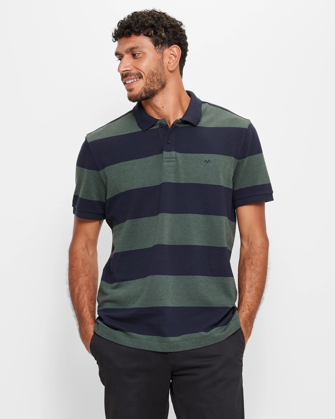 Step up your casual style with our Men's Polo Shirt. Crafted from soft and breathable cotton, this polo shirt offers exceptional comfort throughout the day. The regular fit ensures a relaxed and flattering silhouette, making it a versatile wardrobe staple. Featuring a trendy green/navy stripe print, this polo shirt adds a touch of fashion-forward charm to your ensemble. The collared neckline and button front provide a polished and sophisticated look, while the short sleeves with ribbed cuffs offer a classic appeal.