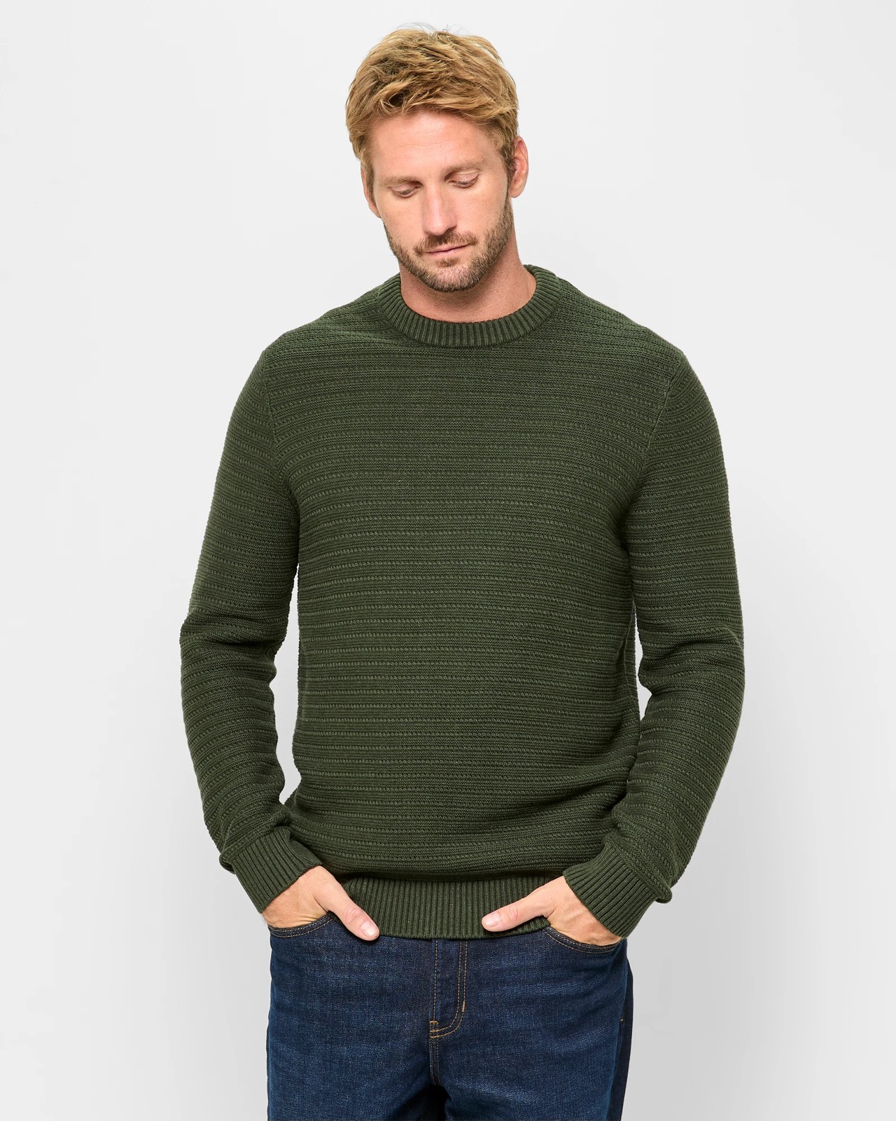 Experience the unmatched comfort of our Australian Cotton Textured Knit Jumper. Made from top-quality Australian cotton, this jumper features a unique all-over textured knit pattern. The regular fit ensures it complements any silhouette, while the ribbed crew neck and long ribbed cuffs offer a snug and cosy feel. A thick ribbed hemline adds an extra touch of style. It’s the perfect addition to any wardrobe, promising warmth and a refined look.