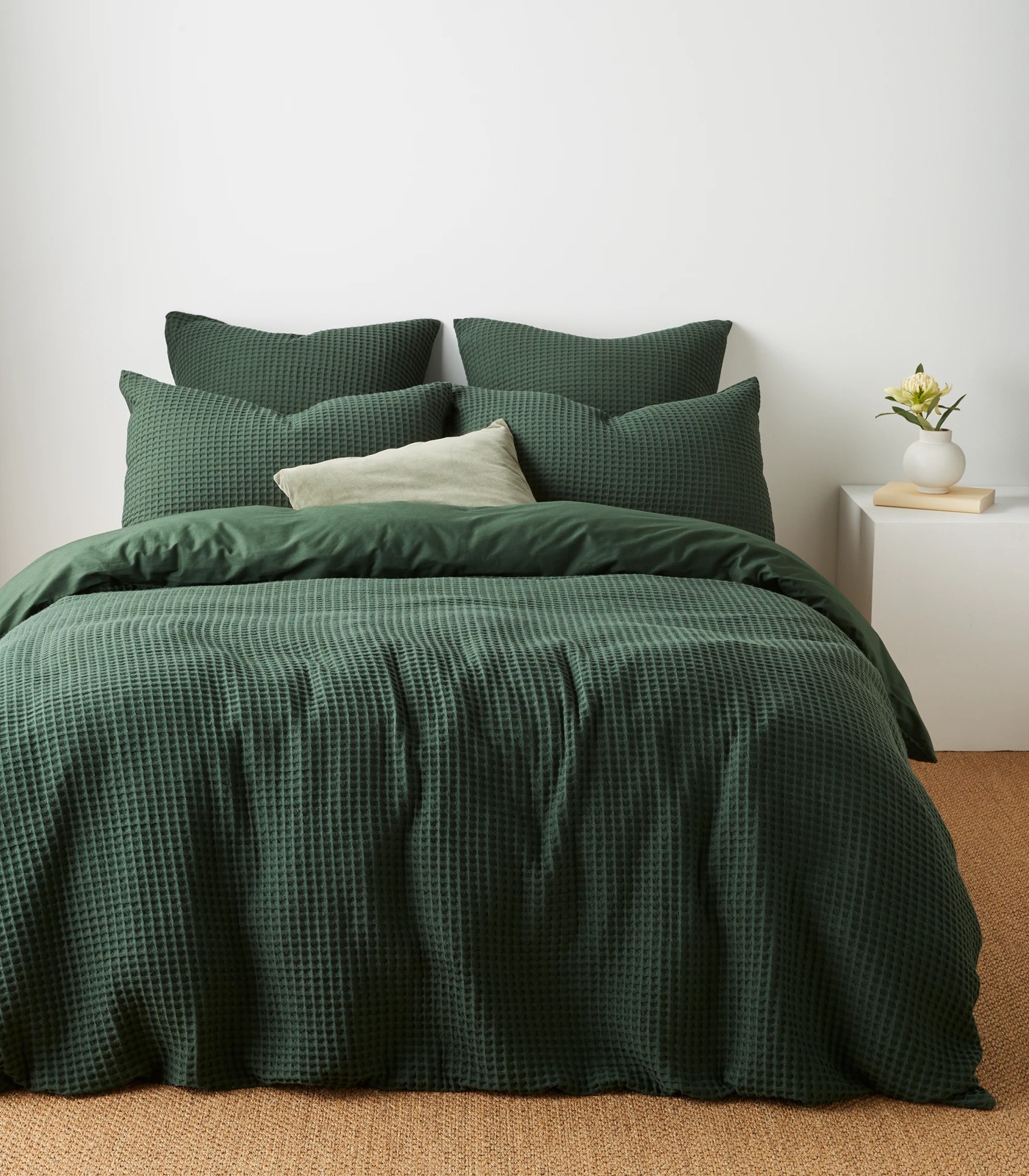Indulge in comfort and style with our Waffle Quilt Cover Set, made from soft Australian cotton. The textured waffle weave adds a touch of elegance to your bedroom decor, while the button closure ensures a secure fit. Transform your bed into a cosy retreat with this gorgeous quilt cover set.